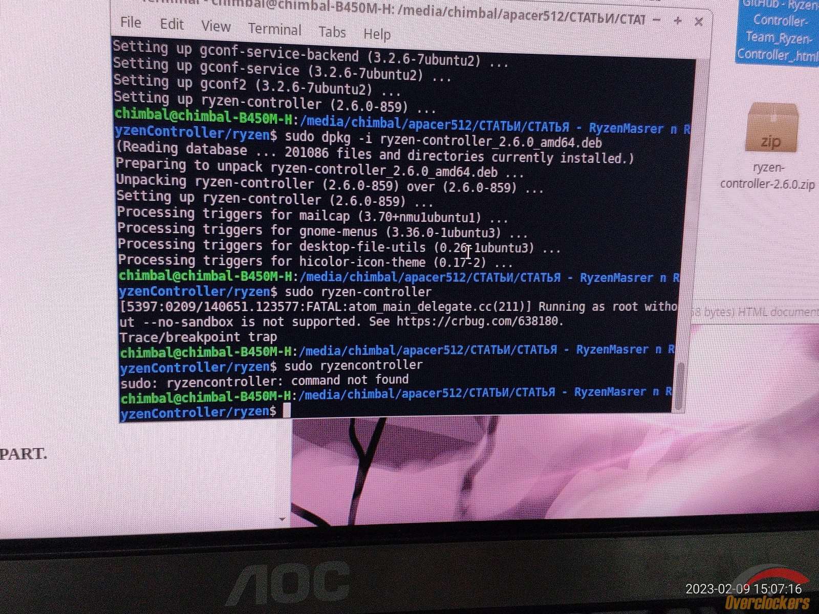 Лучше сразу посмотреть что из себя представляет Ryzen Controller, и потому пытаюсь установить DEB пакет.