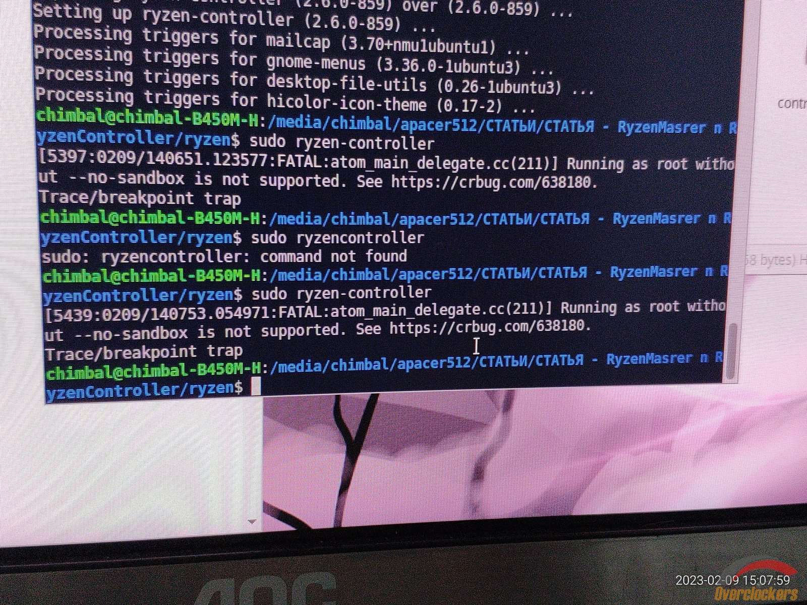 Пытаюсь запустить, но Ryzen Controller не хочет, может я неправильно что-то делаю? Смотрю инструкцию, и да, нужно вводить ryzencontroller, а не ryzen-controller.