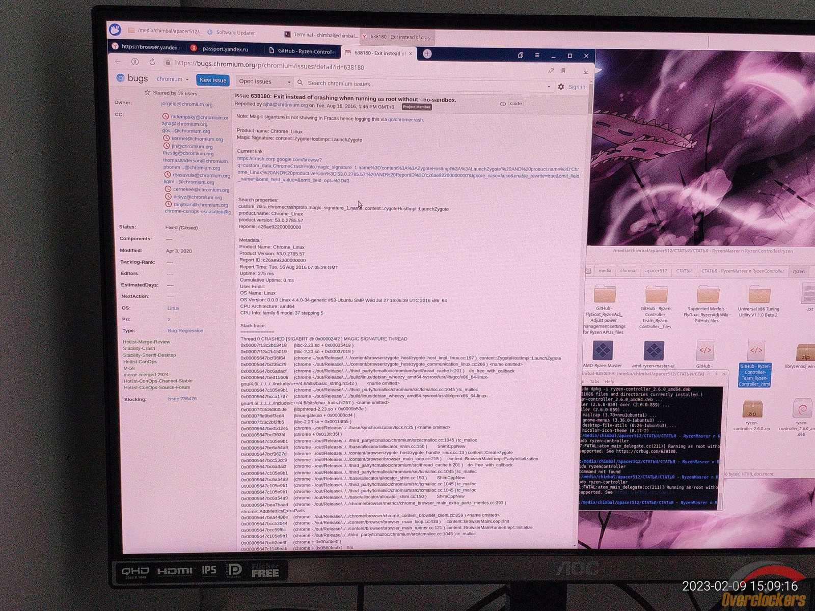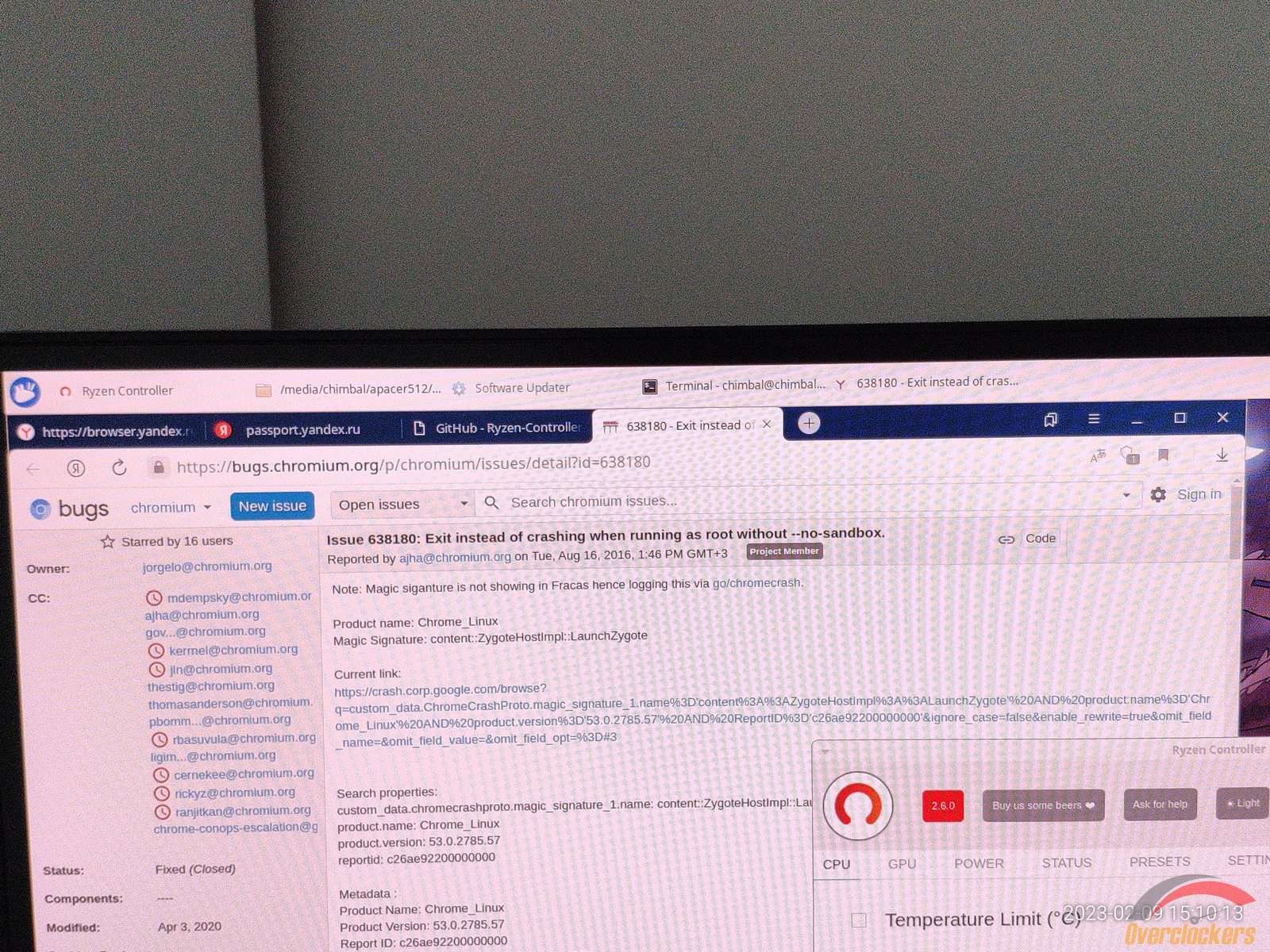 Делать нечего, будем смотреть на ошибку, меня отправляют в интернет на сайт crbug, но ссылку нажать невозможно, хотя курсор меняет свой вид при наведении на ссылку, зачем удобство и подсказки пользователям Linux дистрибутивов? И так сойдет!