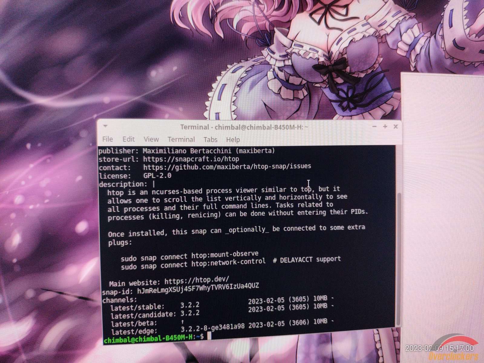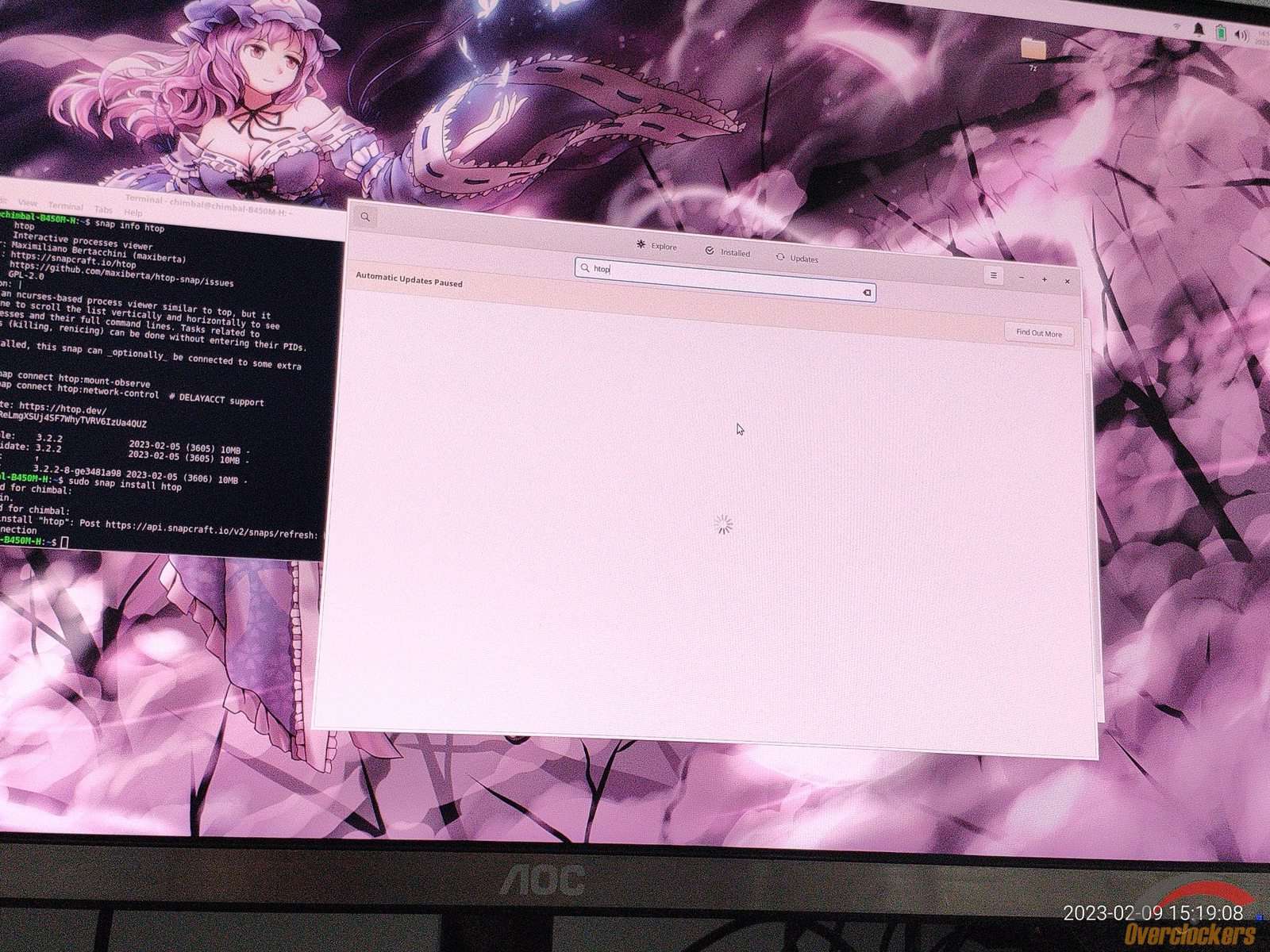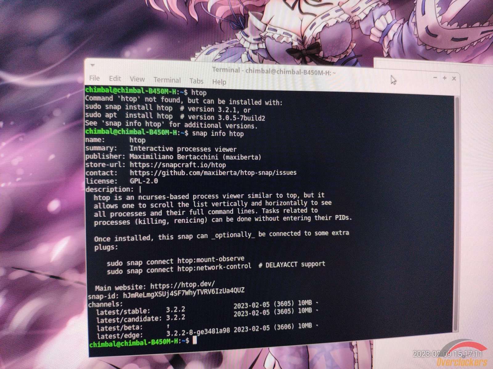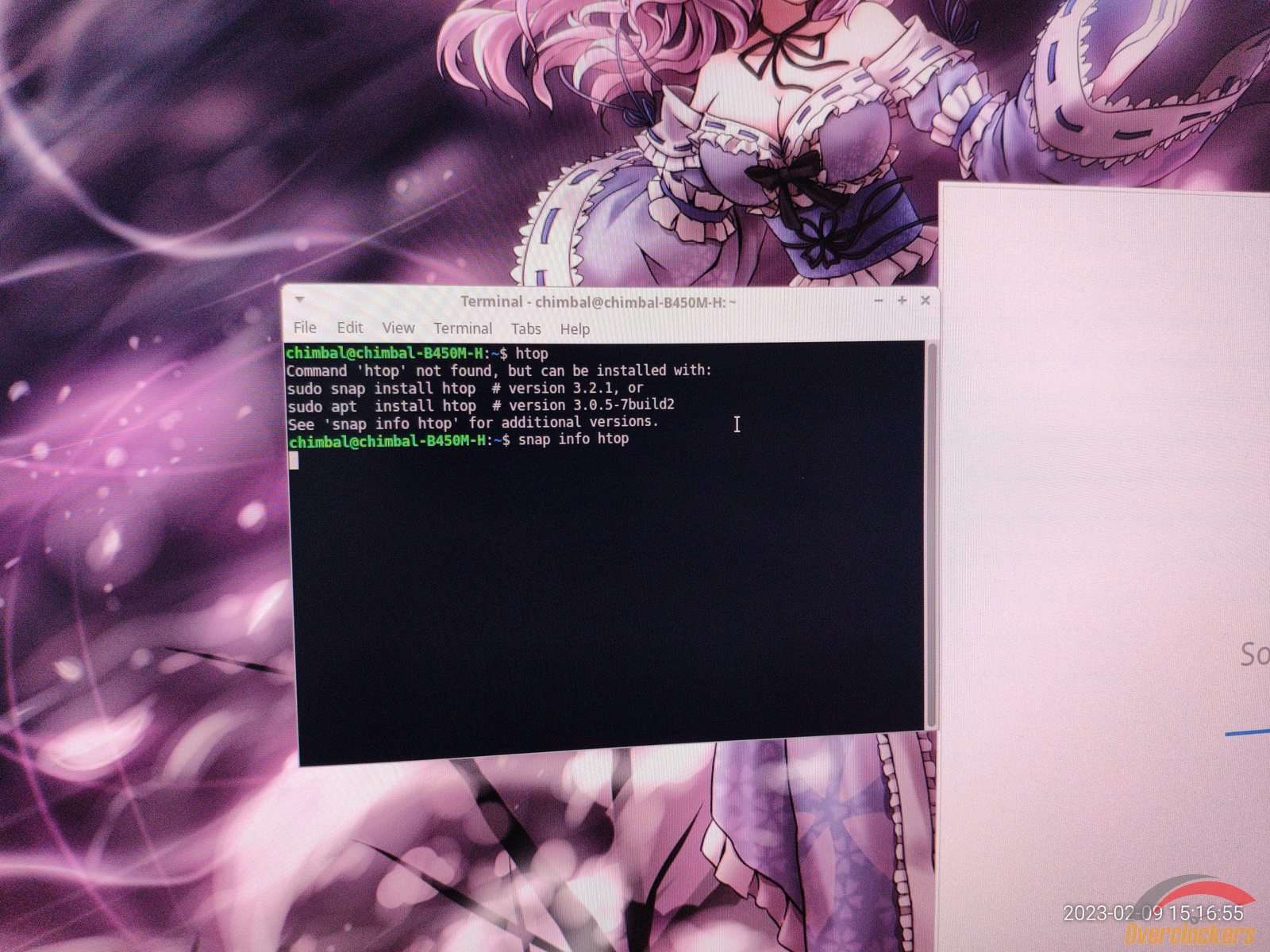 От нечего делать я запустил диспетчер задач, но диспетчер задач оказался абсолютным мусором, в итоге я полез в терминал, чтобы запустить Htop, но он не установлен, какой-то snap есть, и через него можно установить желанный Htop...