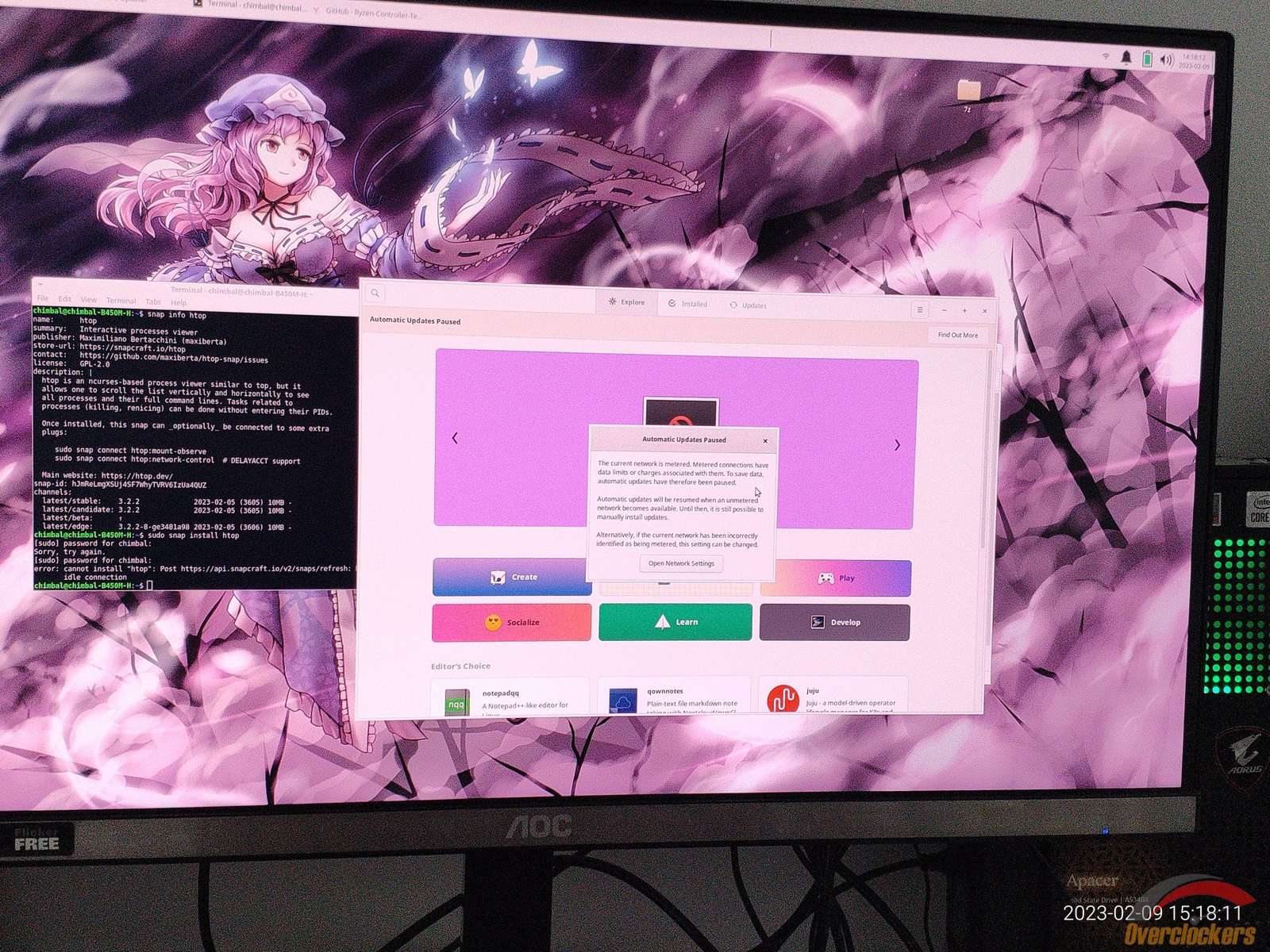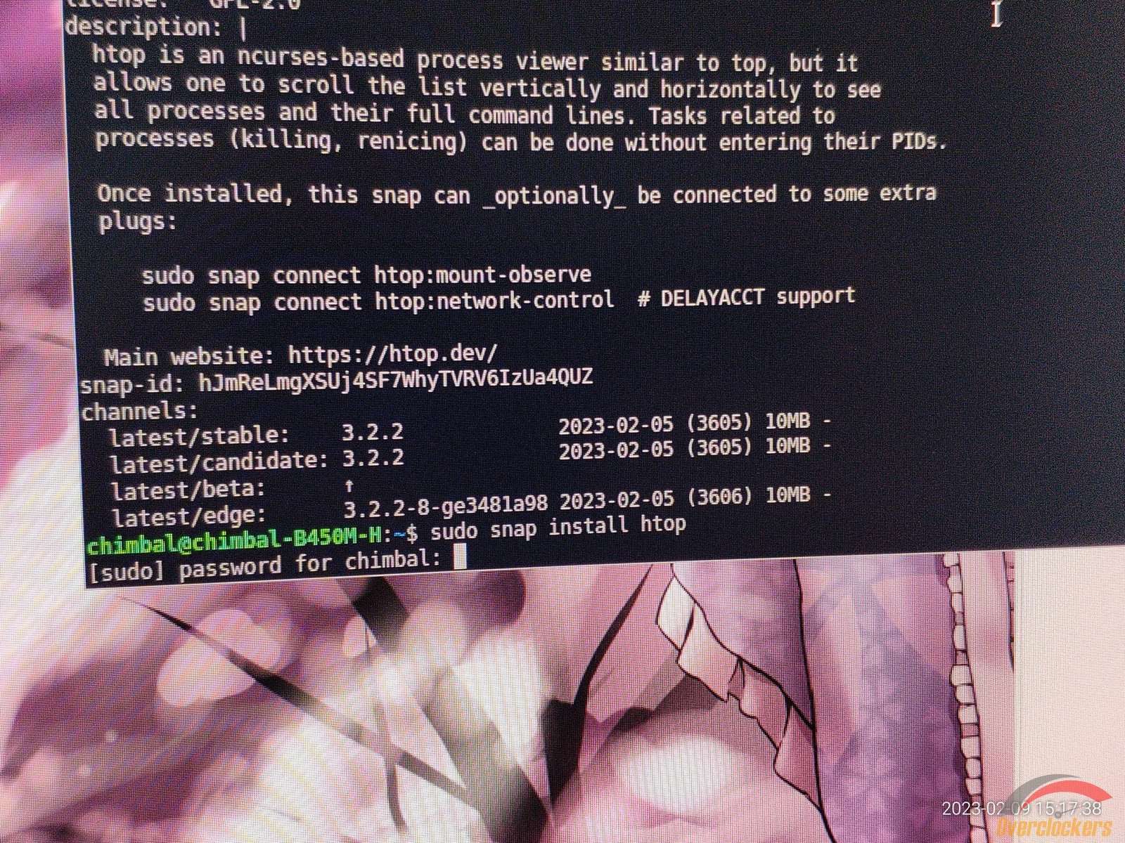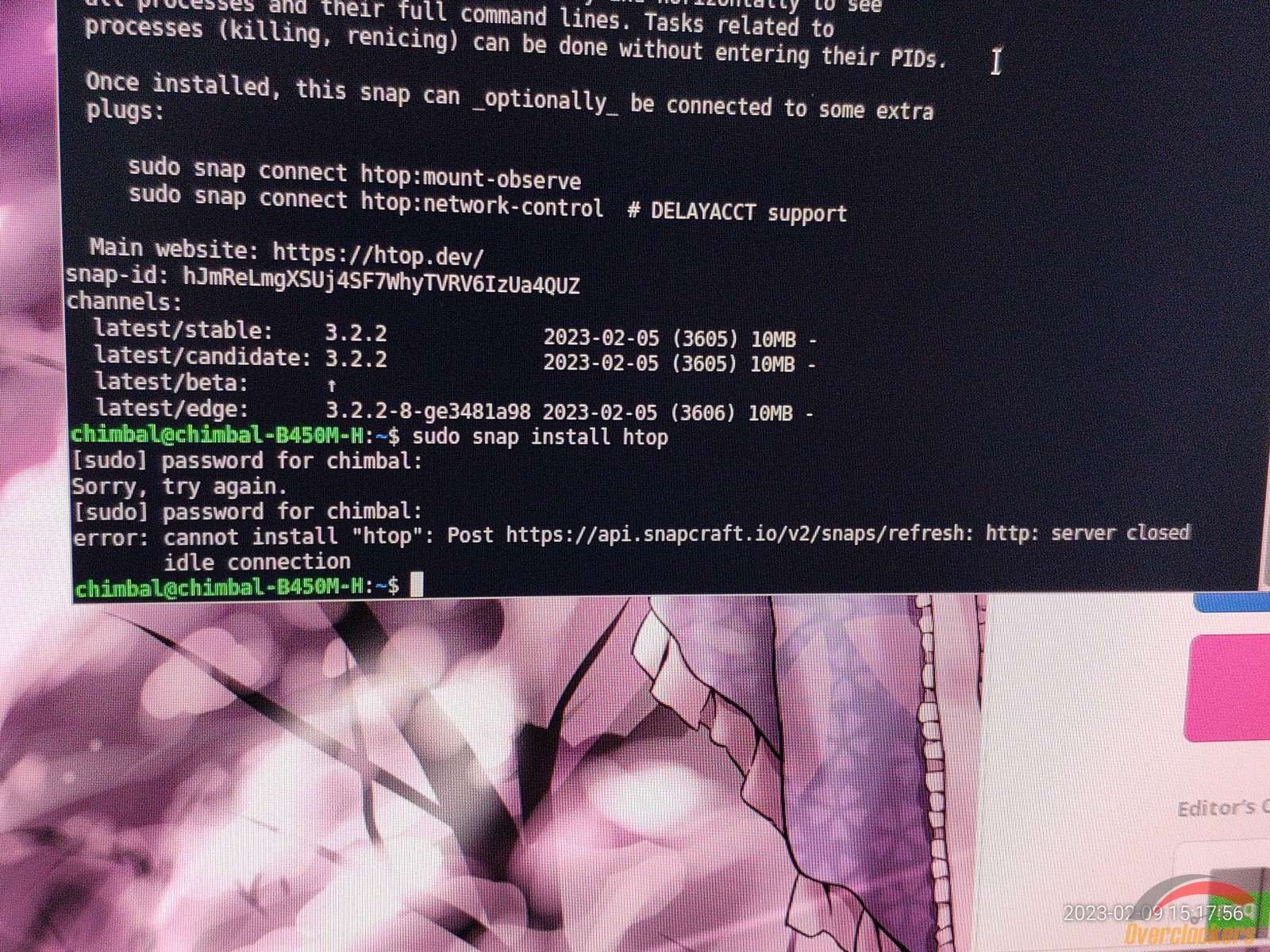 Пробую установить Htop через snap, неправильно ввел пароль, а как иначе когда эти линуксы бесконечно на каждое действие требуют пароль? Ошибка дело времени.