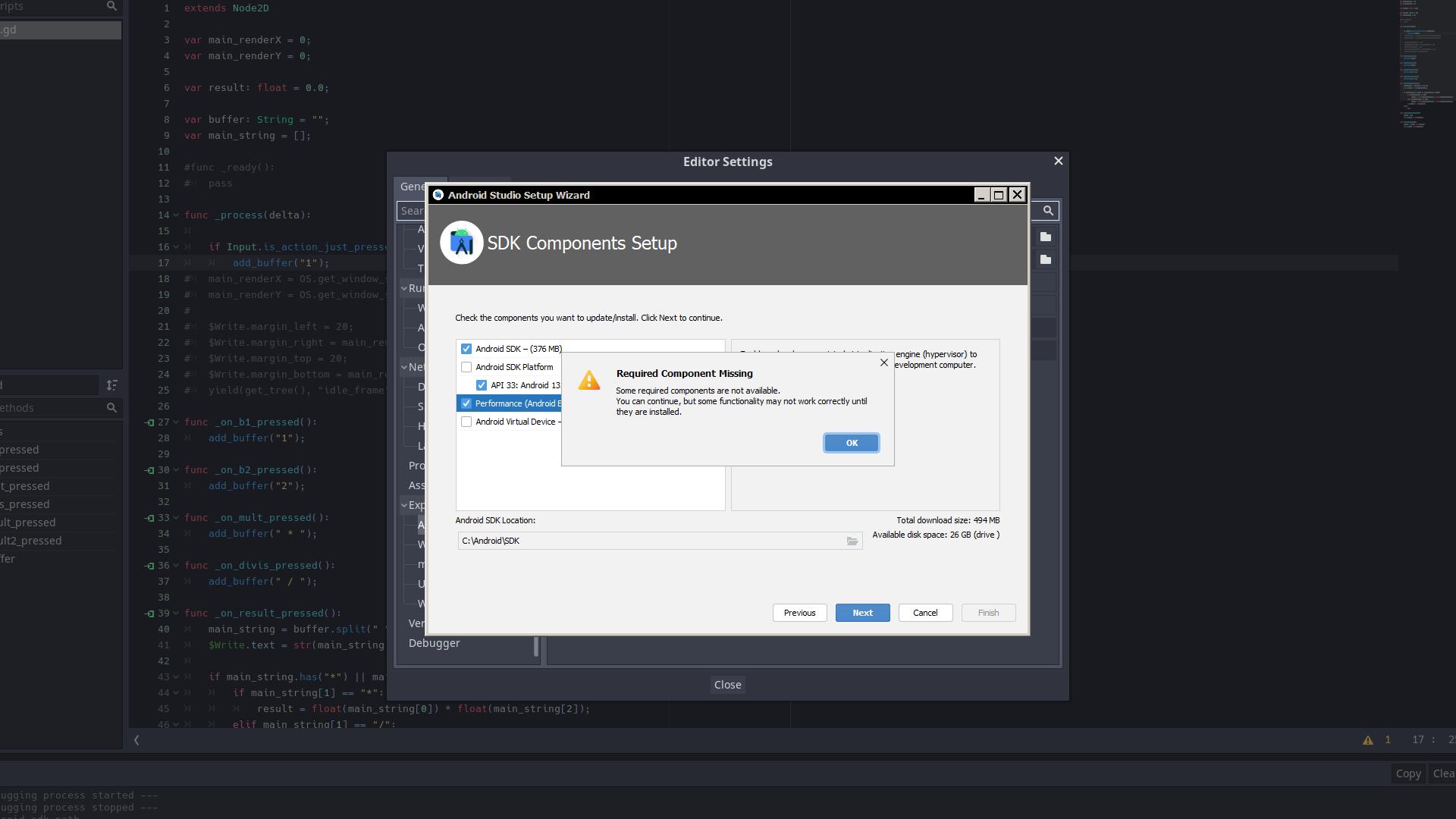 Конечно, если вы скачаете GODOT с проектом и сразу попытаетесь скомпилировать, то у вас ничего не выйдет, вам нужны будут инструменты которые я любезно собрал в один архив... Только не забывайте указывать путь к инструментам в настройках GODOT и проекта.