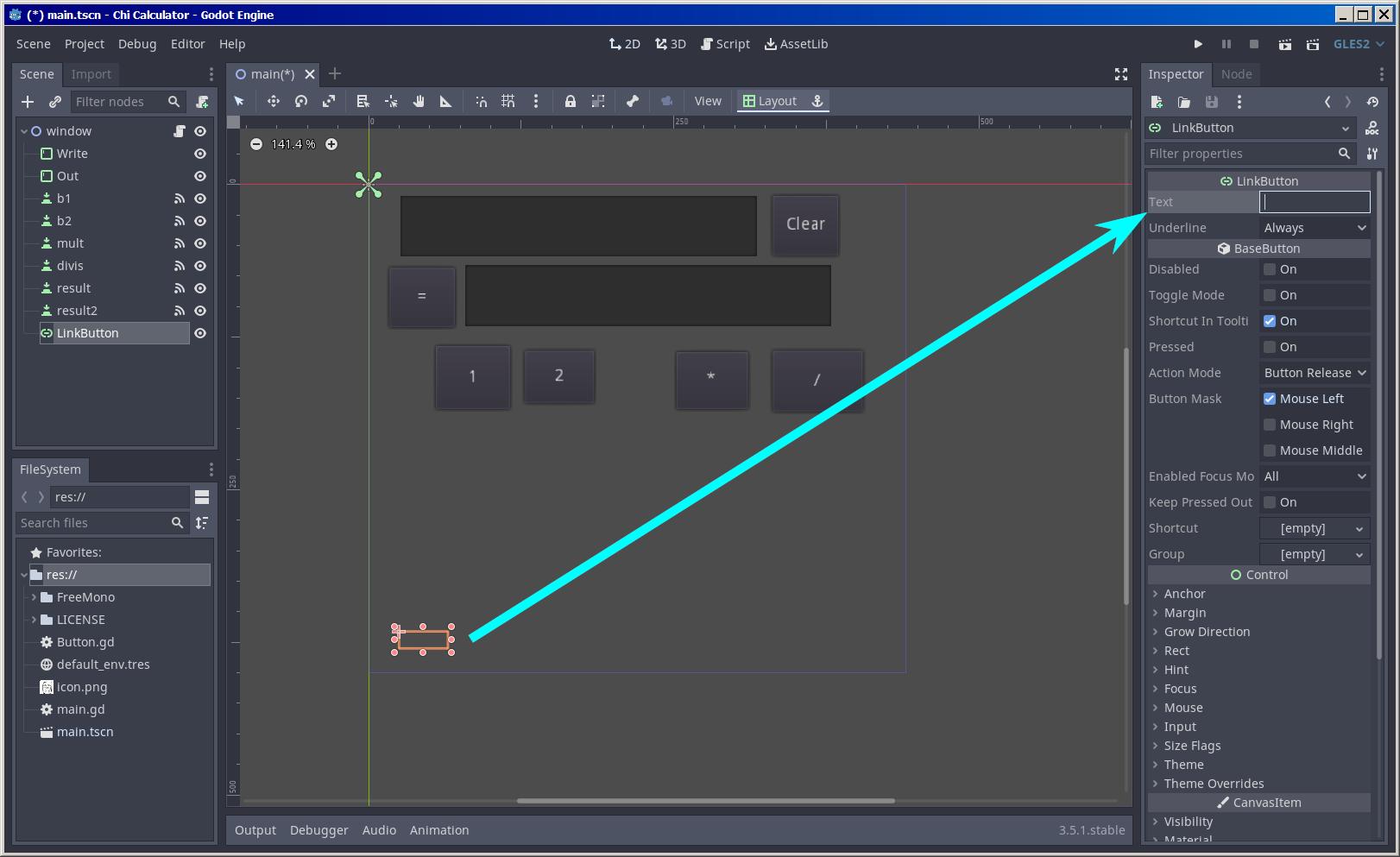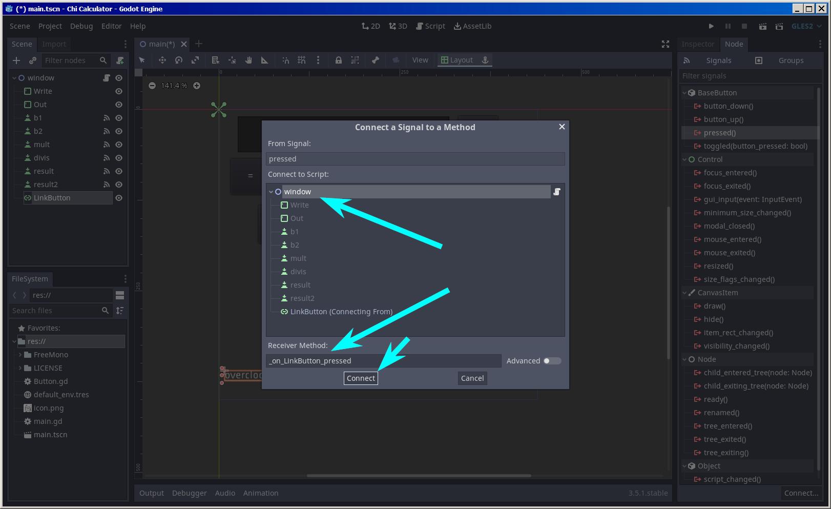 Создаю "Link Button", указываю название, и создаю "связь" с главным скриптом.