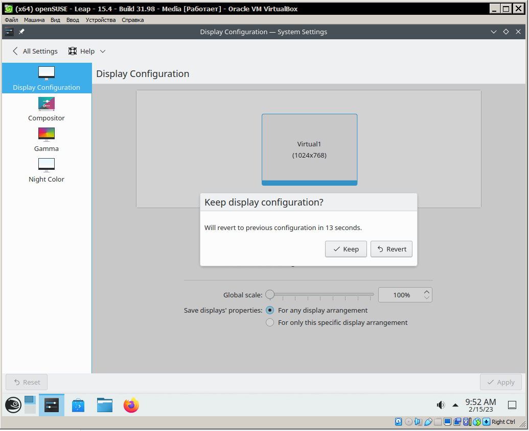 А вот обломитесь! Я хочу увеличить разрешение экрана, ибо 800x600 ну совсем неприлично выглядит для моего монитора... Иду в настройки, пытаюсь изменить разрешение, в Debian Xfce изменилось нормально, а вот Debian KDE наотрез не желает менять разрешение экрана, на мгновение изменяет (первый скриншот) и сразу же откатывает до 800x600 (второй скриншот).