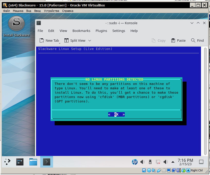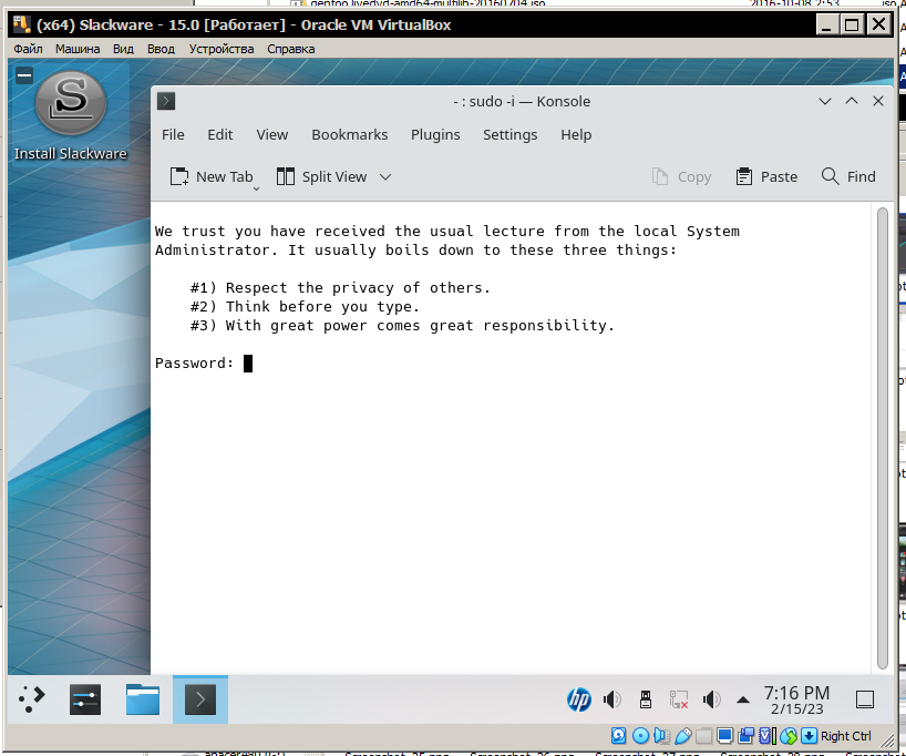 Конечно, если посмотреть внимательнее то пароль вполне можно найти, но вашу кочергу... На рабочем столе есть ярлык "Install Slackware", и этот ярлык открылся от одиночного нажатия по нему, похоже будет "весело"...