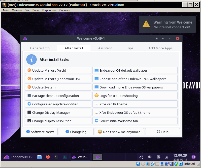 Еще отмечу Endeavour OS, тоже на удивление неплохой установщик был, только вот в системе мне постоянно вылазят навязчивые уведомления, что нет доступа к интернету... Впрочем, сойдет, оно хотя бы работает.