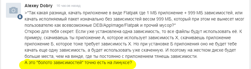 А самое главное, что не нужно плясать над терминалом с бубном как над ущербными DEB пакетами, устанавливая которые обычный пользователь не только вынесет себе мозг и испортит нервы, но еще и обязан предоставить доступ в интернет для скачивания болота зависимостей.