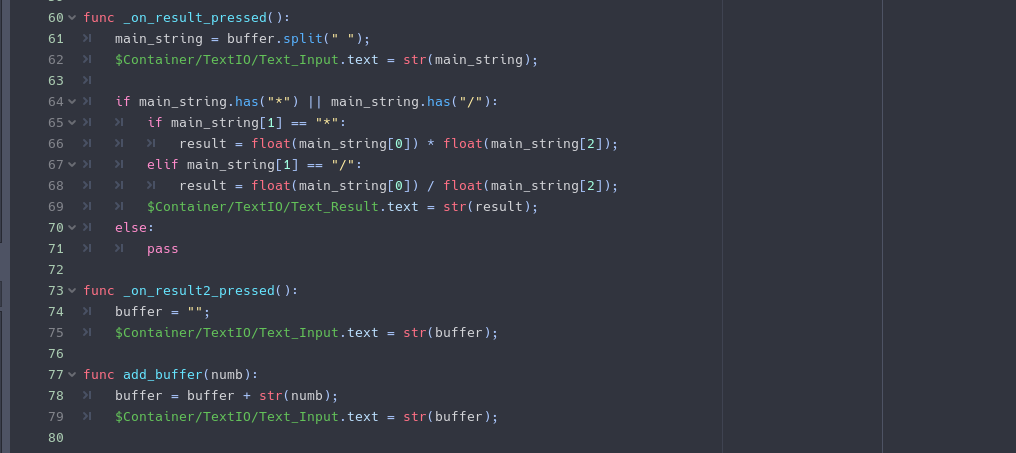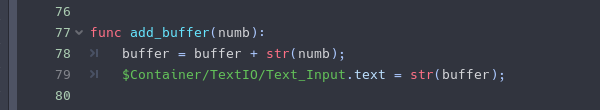 А дальше работает функция, в скобках функции стоит numb, это переменная в которую будет записано "0" если я нажму кнопку 0 на клавиатуре, этот "0" я беру из переменной numb и добавляю в переменную buffer, а следующим действием я обновляю окошко ввода калькулятора присваивая ему значение переменной buffer.