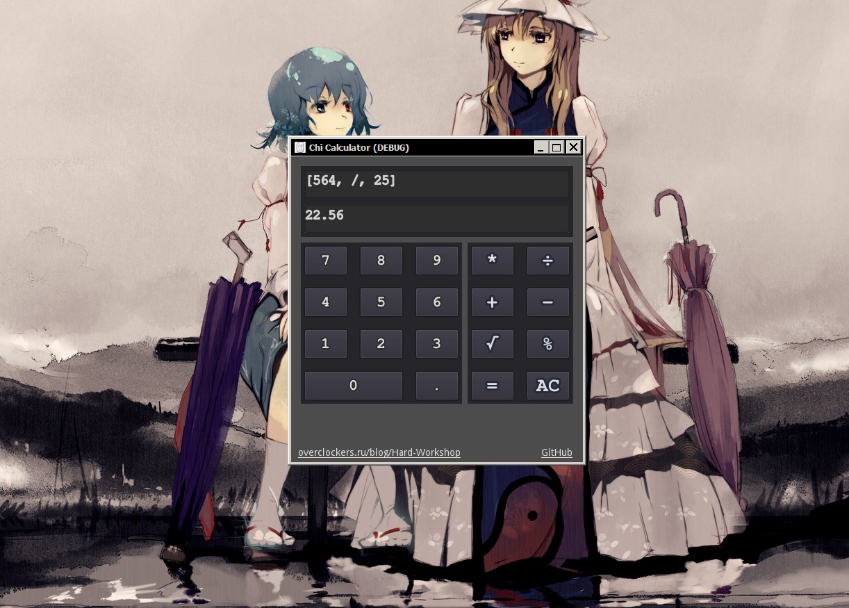 Здесь же прикреплю ссылку на репозиторий: ( https://github.com/Shedou/Chi-Calculator ).