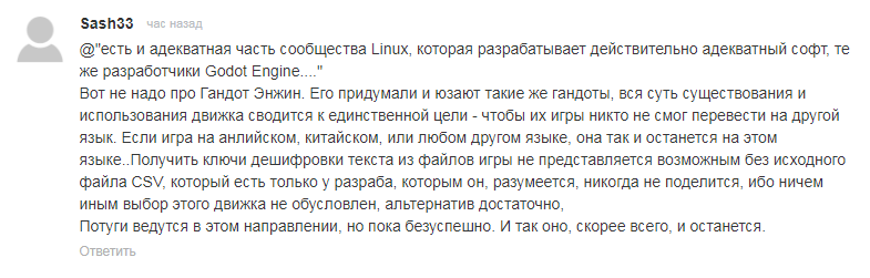 Но совсем другое дело когда линуксоиды препятствуют разработке софта, порой открыто заявляя "похейтим и там его", да чего уж там, они даже Godot Engine поносят, хотя это один из редких проектов, который действительно адекватен в плане запуска и распространения, и не зависит от помойки убогих дистрибутивов, хоть на USB накопитель можно скопировать и разнести по десятку систем без доступа к интернету: