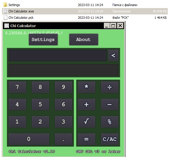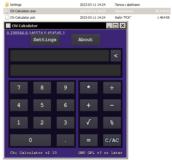 Репозиторий Chi Calculator: ( github.com/Shedou/Chi-Calculator ).