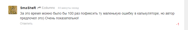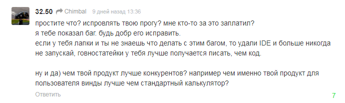 Или может мне нужно заплатить вам за то, чтобы вы соизволили исправить баг, который я в принципе не обязан исправлять, так как калькулятор уже давно выполнил изначально поставленную цель разработки? А может лучше закрыть код, сменить лицензию, и начать требовать деньги за запуск и использование софта...