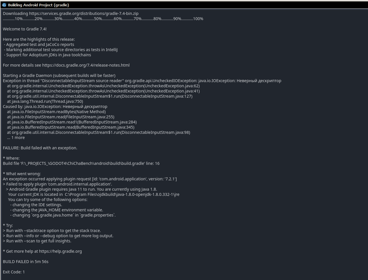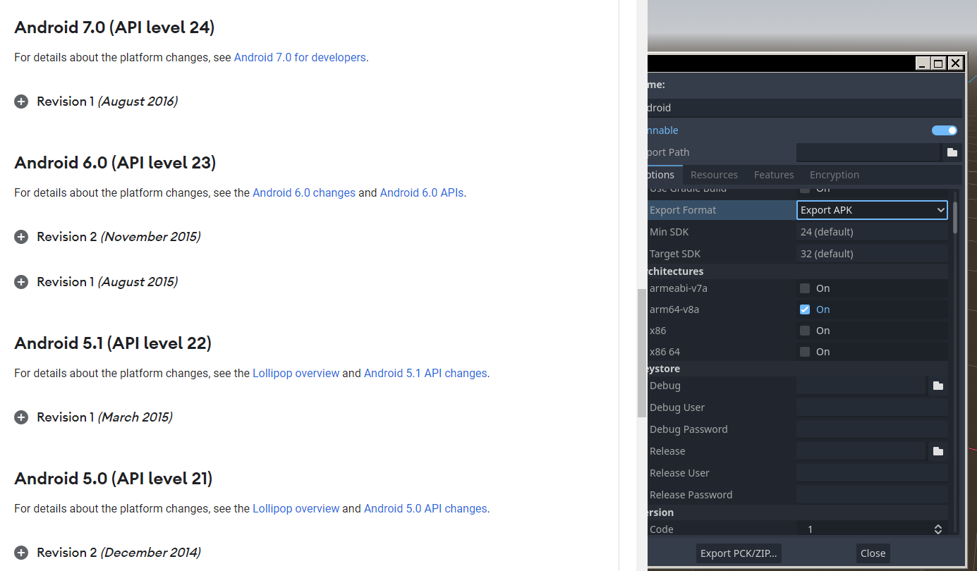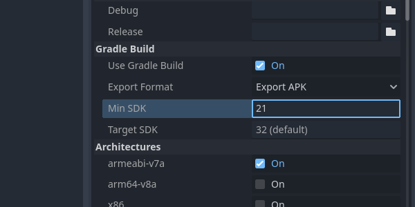 Еще у Godot Engine 4.0 есть неприятности со сборкой для Android, минимальная поддерживаемая версия это Android 7.0, что весьма неприятно, ибо у меня есть вполне живой смартфон на Android 5.1 с процессором на 8 ядер 1.7 ГГц, Mali T760 MP2 с поддержкой OpenGL ES 3.0 / 3.1, и 2 ГБ LPDDR3 ОЗУ.