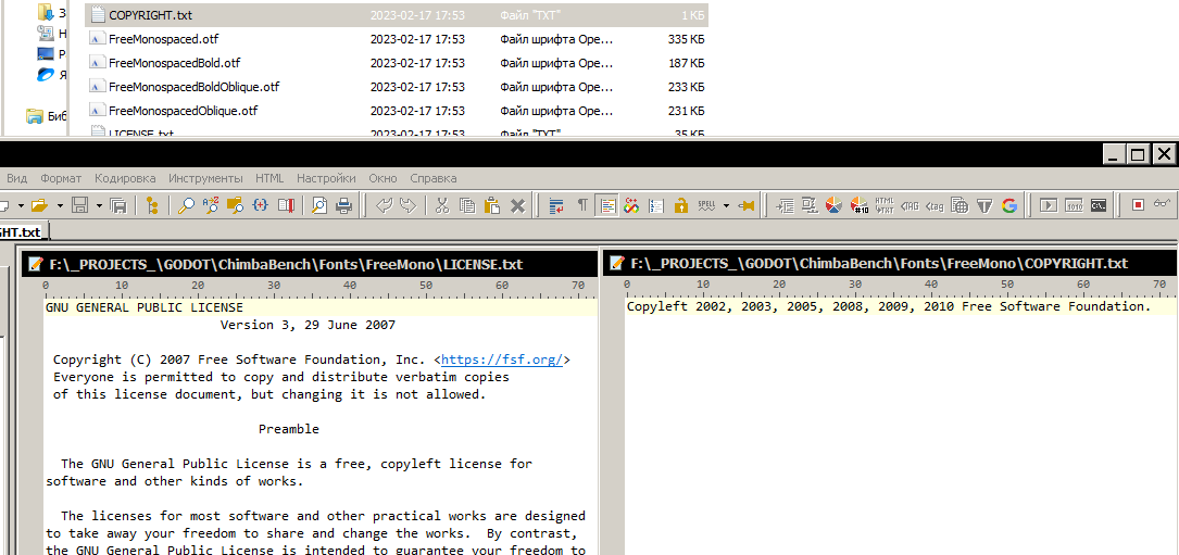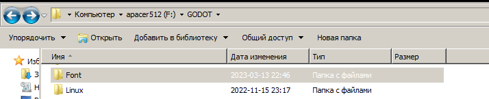 Я не просто так оставил условие для проверки наличия папки "Font", и при её отсутствии создание данной папки, ведь приложение создало папку там, где исполняемый файл Godot Engine, и это наглядно показывает, что работа с файлами может быть весьма небезопасным занятием.
