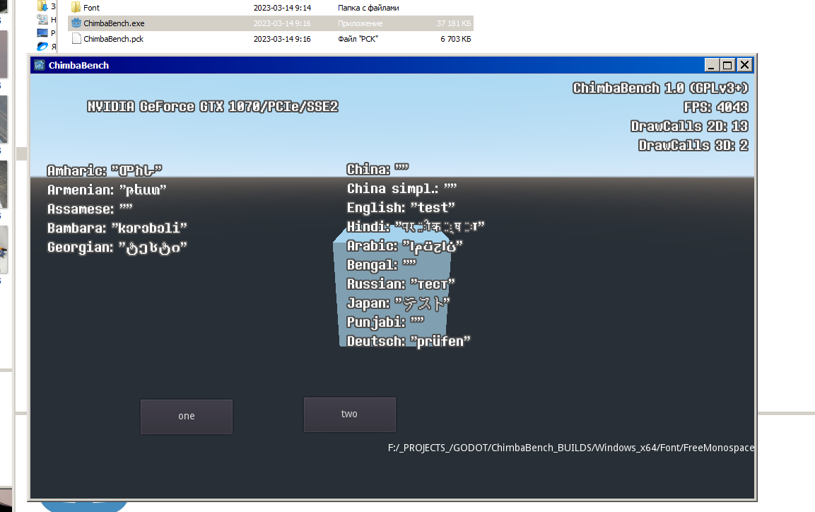 Ранее я решил, что буду разрабатывать несколько версий бенчмарка, основную ChimbaBench на основе OpenGL 3.0 (Godot Engine 3.5.2), и ChimbaBench Vulkan на основе Vulkan API (Godot Engine 4.0).