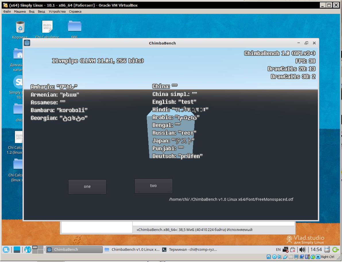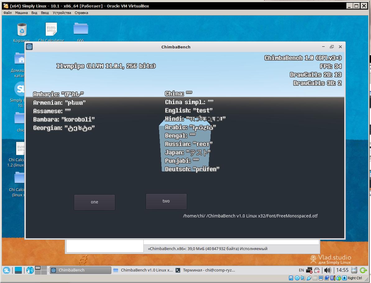 Далее Simply Linux 10.1, и он явно производительнее Федоры справился с бенчмарком, хотя версия LLVM явно более старая, неужели в 15 версии LVMM все так плохо, что 11 версия показывает на ~34% больше FPS? Хотя LLVM 3.2 вообще показывал 43 FPS, но там часть окна была за пределами рабочего стола, так что не буду сравнивать напрямую.