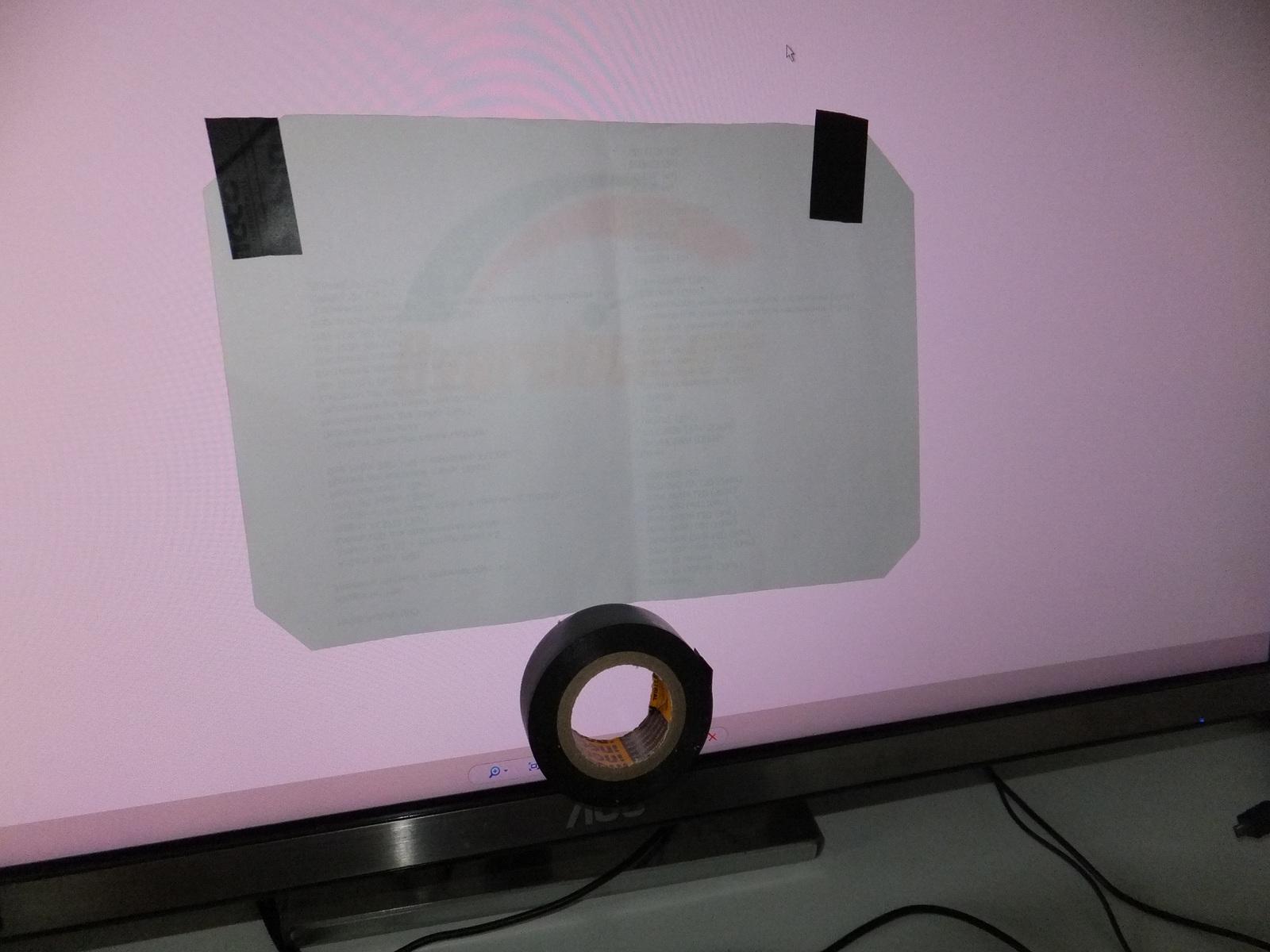 Лист бумаги мне нужно закрепить на мониторе, но при этом не повредить сам монитор, сделал я это чёрной изолентой, не спорю, на синей держалось бы лучше, но у меня нет синей изоленты...