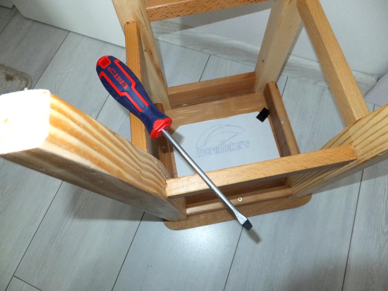 Я долго размышлял о том, куда нанести логотип Overclockers, и не нашел надежнее места внутренней стороны табуретки, ведь если нанести на внешнюю сторону, то логотип неизбежно будет стёрт во время использования табуретки, а так он будет в целости и сохранности, и никто на нём не будет сидеть.