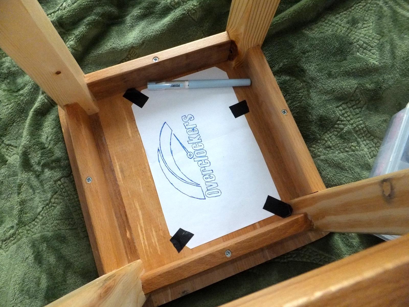 Вот так подручными средствами я перенес логотип Overclockers на табуретку, и даже ни одной буквы не пропустил в слове!