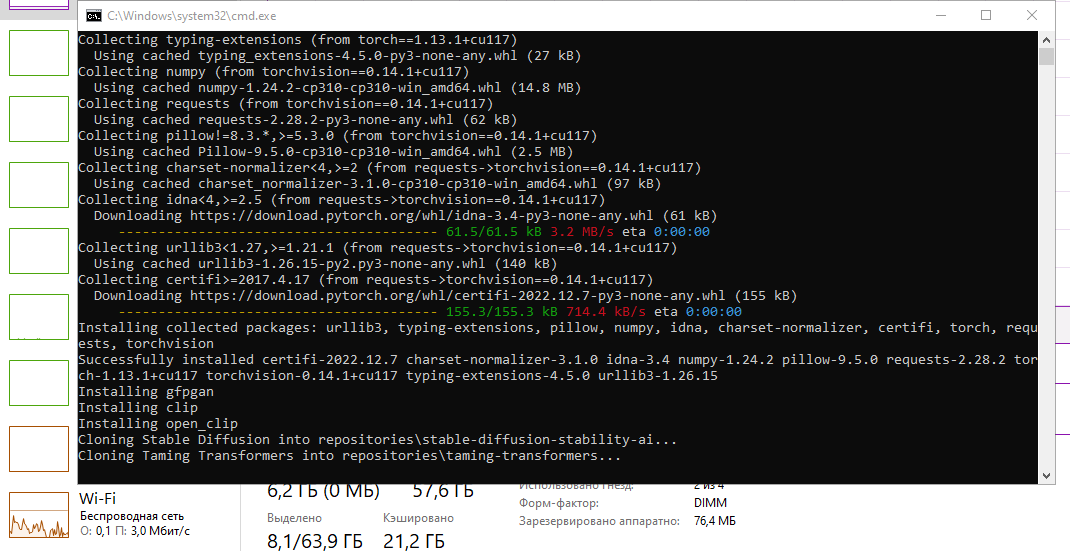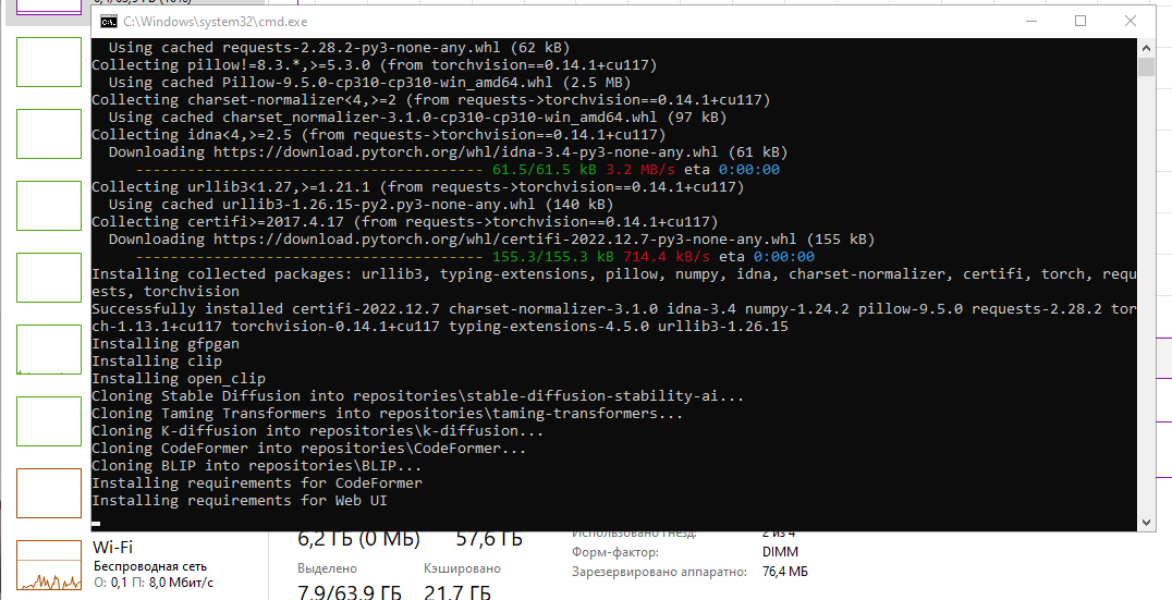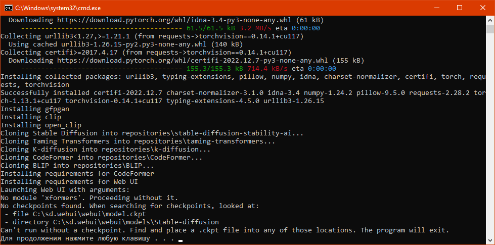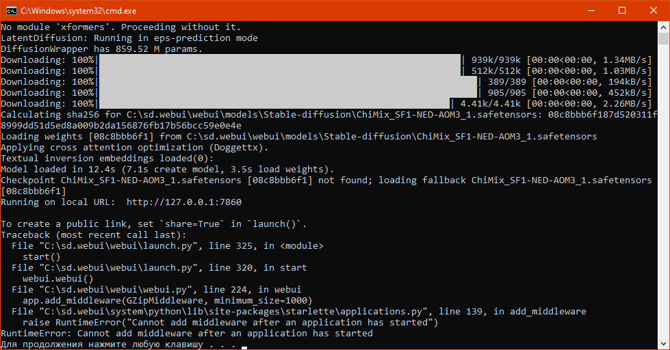 Вот казалось бы все зависимости загрузились, но с первого запуска не сработало как было обещано, ладно, подкину вручную модель в папку, и вот тут я уже понимаю что дальше будет веселее...