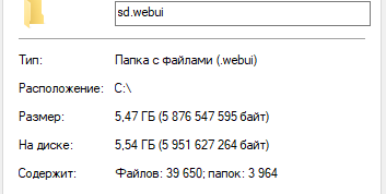 К слову, вот настоящий размер Stable Diffusion web UI без моделей, и это ещё не "всё в одном", это только начало: