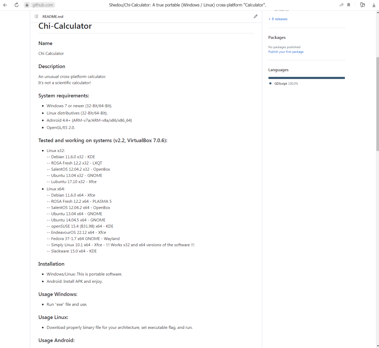 А что проект развился в простой калькулятор это уже "так получилось"... Хотя в некоторых дистрибутивах Linux (Debian 11.6.0 Xfce, SalentOS 14.04.2 full x64) нет калькулятора в стандартном наборе приложений, так что моя поделка очень даже выручает в таких случаях, ведь не требует выкачивать гигабайты зависимостей ради всяких Kcalc и работает буквально в любом дистрибутиве.