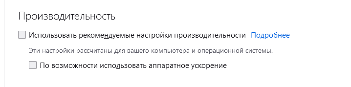 Следующим обязательным действием будет отключение "аппаратного ускорения", вообще это следовало бы назвать "использовать ГП для отрисовки", ведь центральный процессор тоже вычисления производит аппаратно.
