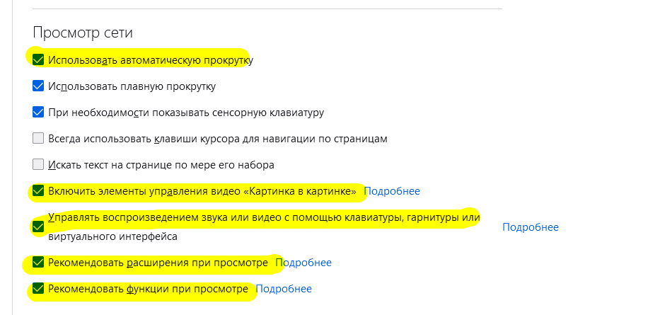 Так же отключаю всё что выделено жёлтым цветом, нечего тратить ресурсы на функционал в котором нет абсолютно никакой нужды: