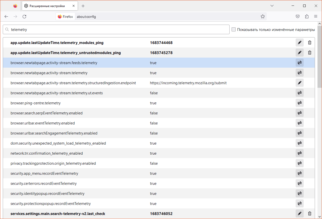 Если перенести папку с браузером в другой каталог, то и профиль пользователя сбрасывается с настройками, само собой и вся телеметрия тоже возвращается во включенное состояние, ну кроме гадких автоматических обновлений, ибо они дополнительно отключены файлом "policies.json" в папке браузера: