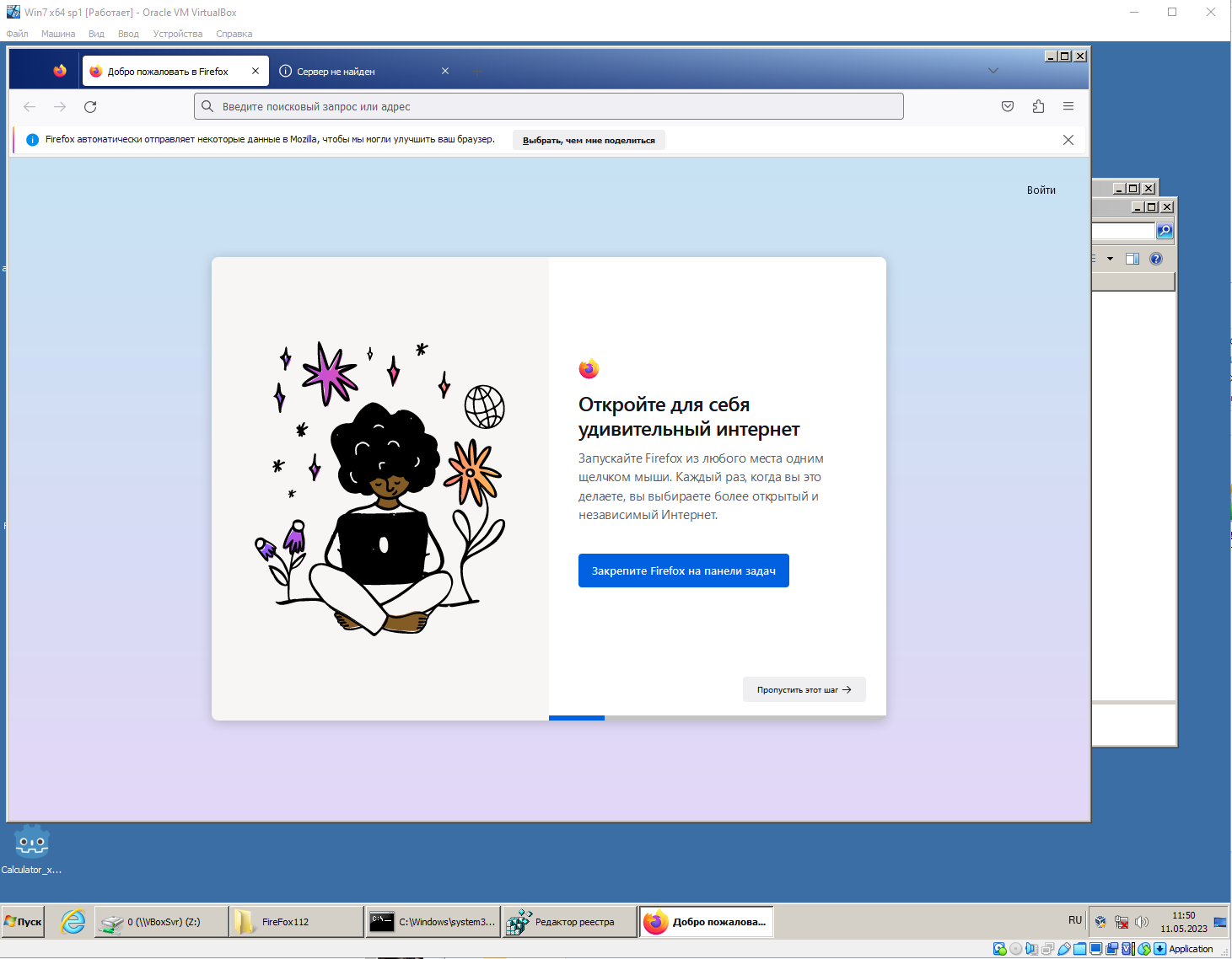 Для начала из автономного установочного пакета устанавливаю браузер в виртуальной машине чтобы ничего лишнего не произошло: