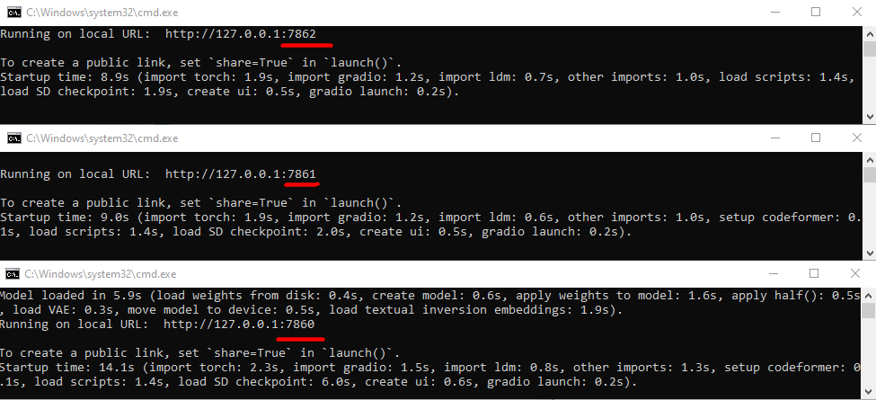 Я знаю что можно запустить несколько приложений одновременно, первое займёт порт 7860, второе 7861, третье 7862, а это значит что я не могу просто взять и через BAT файл вызвать вкладку в браузере с локальным адресом и конкретным портом, ведь порт может быть разным.