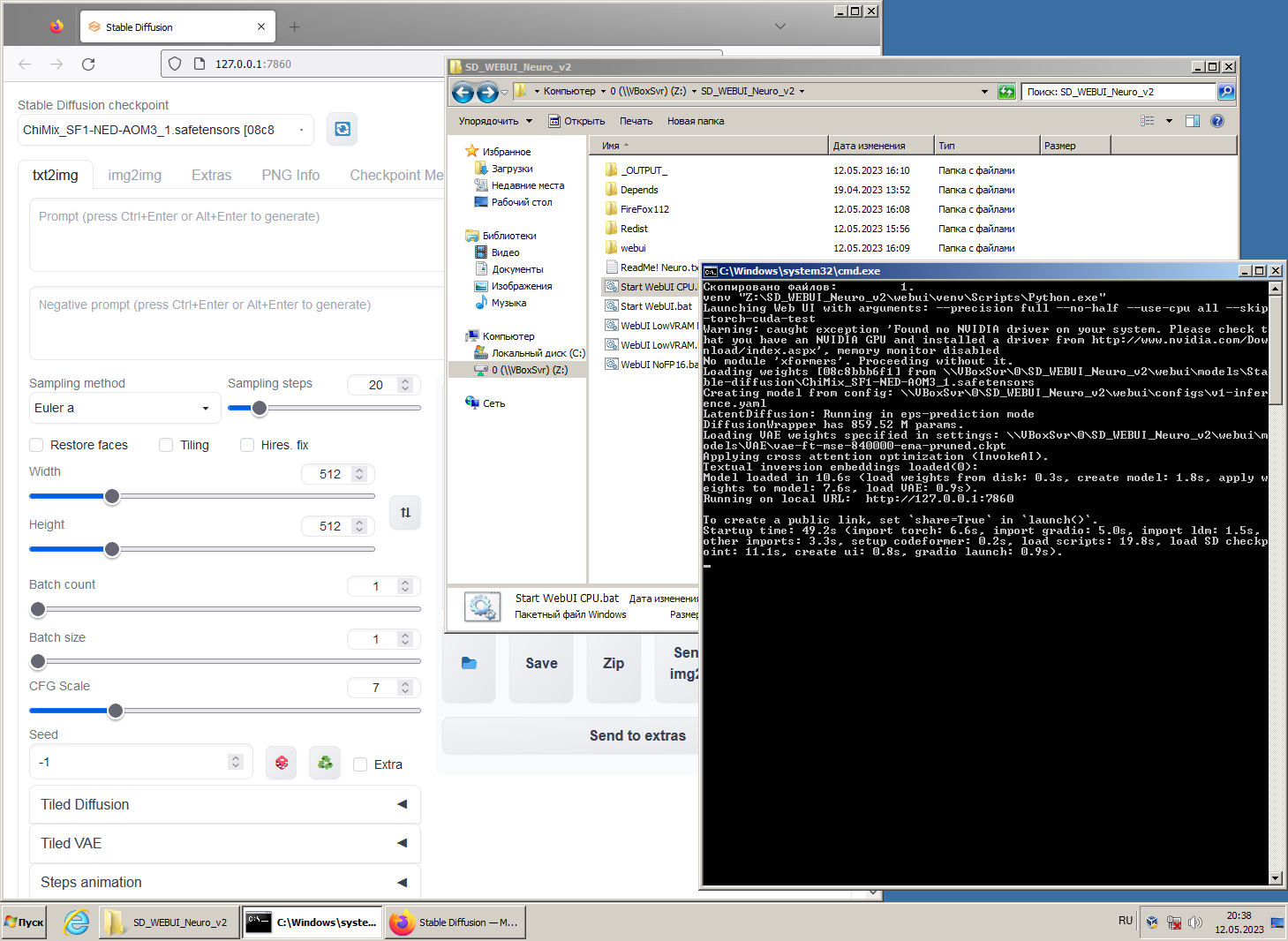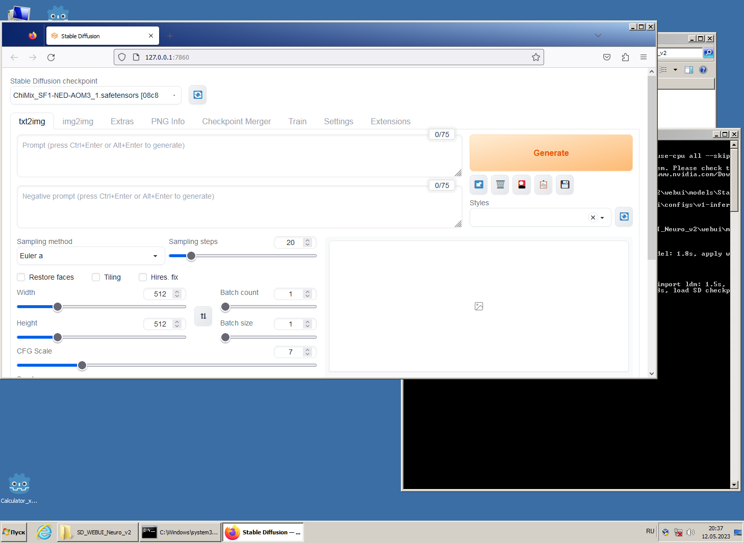 Вот и завершена вторая версия сборки Stable Diffusion web UI Neuro, зависимость от браузера устранена, теперь сборка действительно пригодна для автономной работы на системах которые никогда даже не видели интернет.
