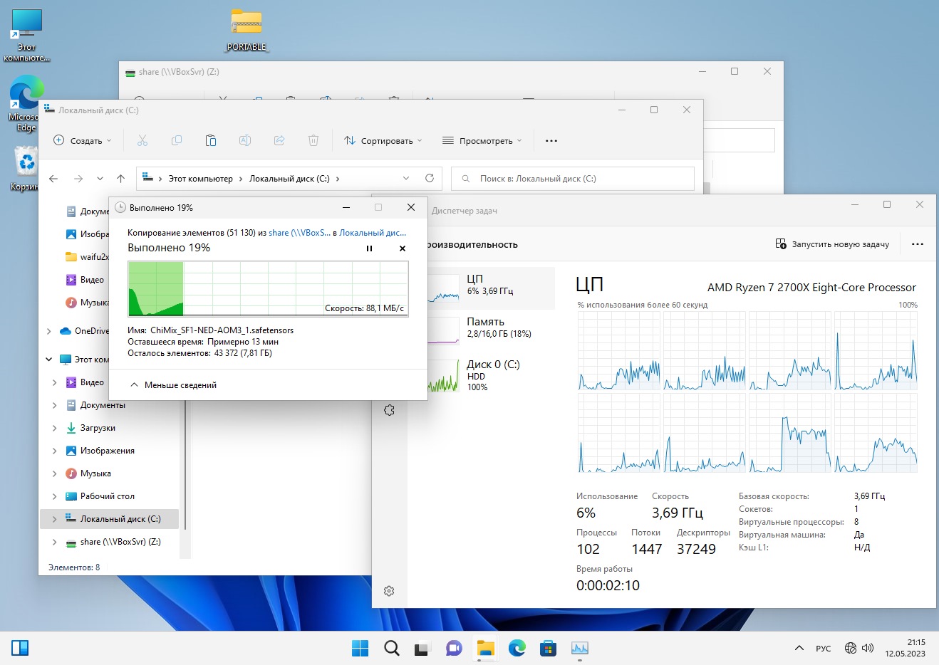 В итоге я решил скопировать сборку на локальный диск системы, но в процессе у меня каким то раком зависло одно окно проводника, ох уж эта Windows 11...