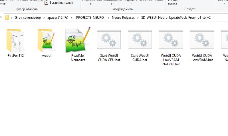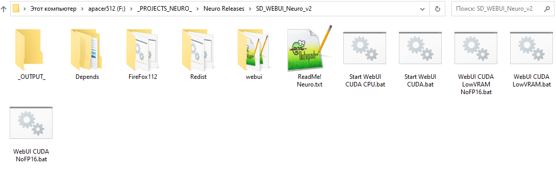 Точно, чуть не забыл, нужно же переименовать BAT файлы, зачем? Хм, как бы объяснить... Просто у меня есть некоторая задумка, я хочу сделать так, чтобы пользователь мог сложить две сборки в одну папку, например CUDA вариант и DirectML используя при этом одни и те же зависимости (Python, Git).