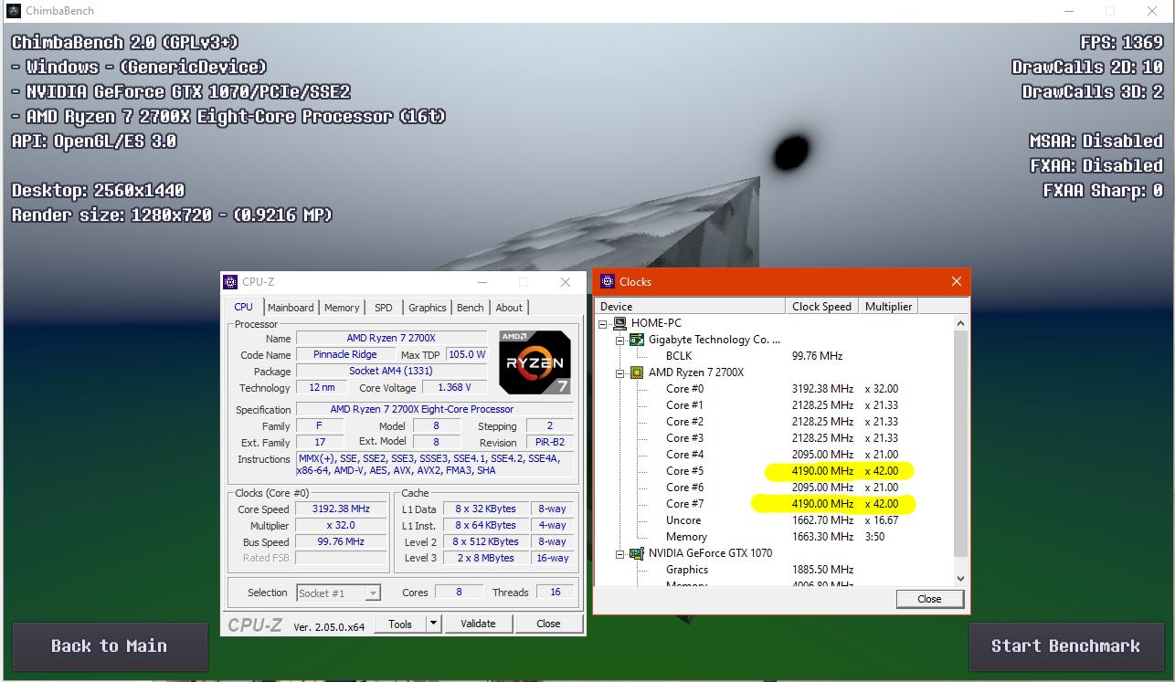 Прежде всего верну процессору XFR Boost, да, вот так гораздо лучше, теперь процессор поднимает частоты активно используемым ядрам примерно до 4.2 ГГц, хотя в 720p разрешении это практически никак не повлияло на FPS, как было в районе ~1360, так и осталось: