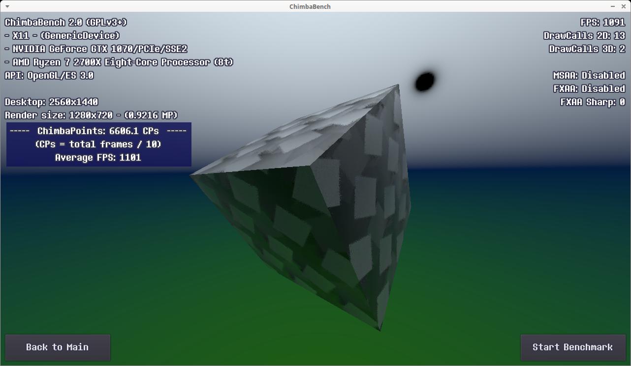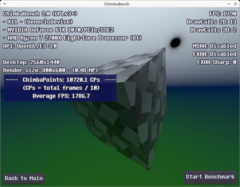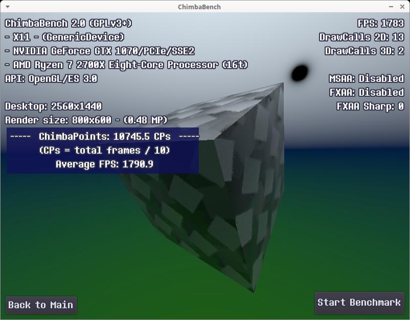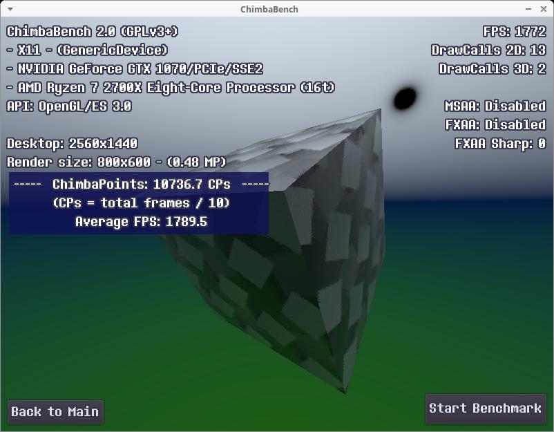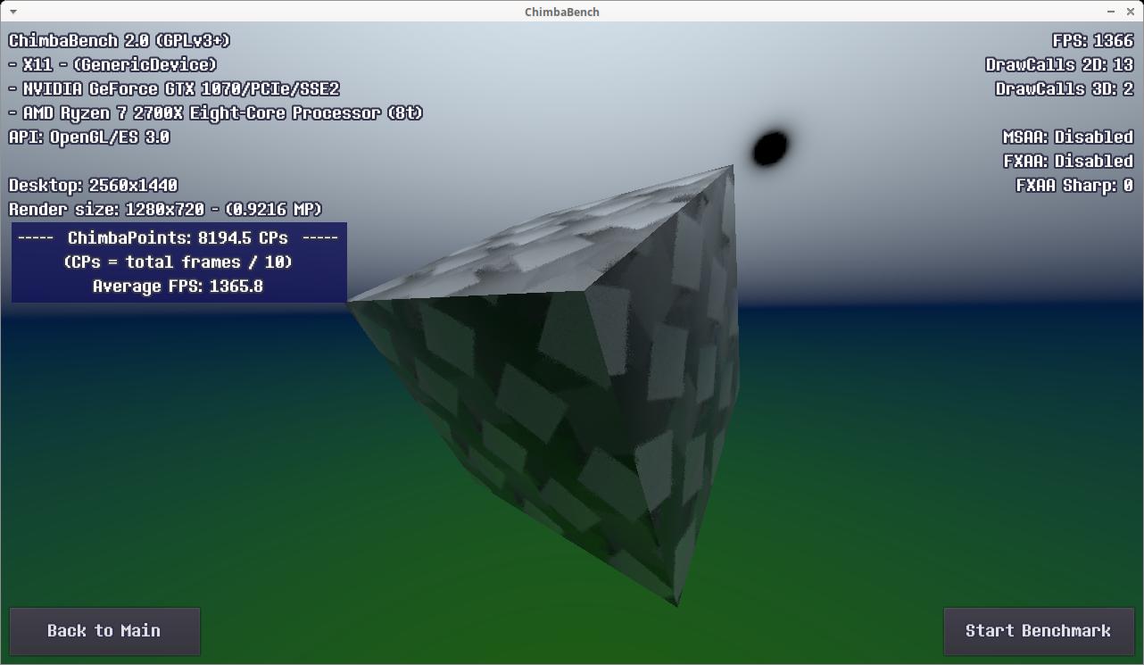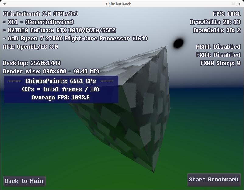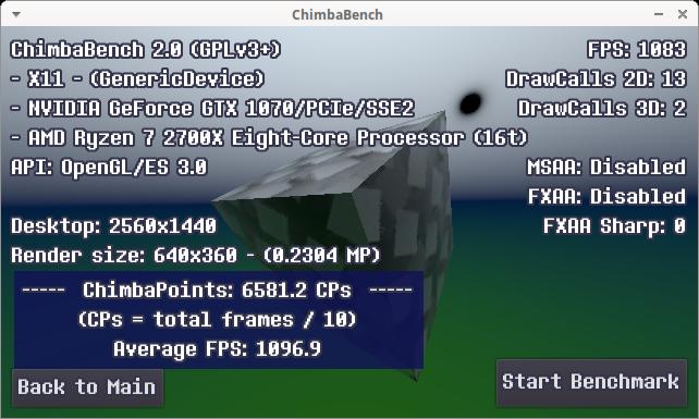 Стоит заметить, все эти результаты собраны без использования MSAA 16x сглаживания, а ведь оно добавляет нагрузку на видеокарту, со сглаживанием моя GTX 1070 даже в 640x360 способна набрать всего 8196 ЧимбаПоинтов, для аналогичного результата даже в среде Windows достаточно чтобы процессор работал на частоте всего 1.8 - 2.0 ГГц, тут и Linux не поможет, ибо явный упор в видеокарту: