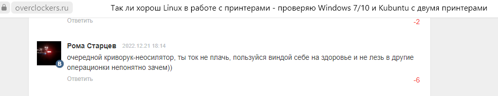 Ах да, я назвал комментатора ещё и фанатиком Linux, ну тут без комментариев...