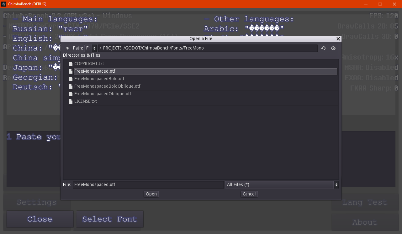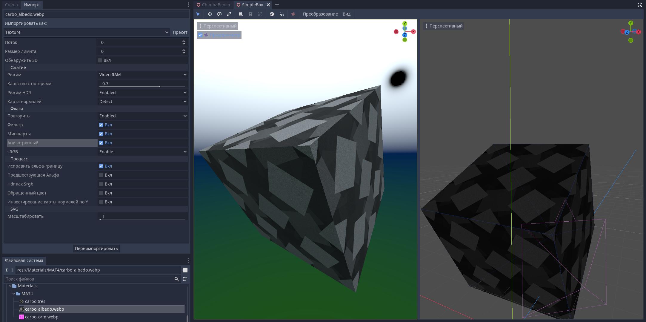 Пока ещё не знаю что именно возьму в качестве тяжёлого теста для видеокарт, или с нуля создам сцену новую, в любом случае что-нибудь придумаю... Но сейчас была решена проблема размазанной текстуры, как и во многих "попен-сорс" проектах, в Godot Engine нельзя просто взять, и изменить уровень анизотропной фильтрации: