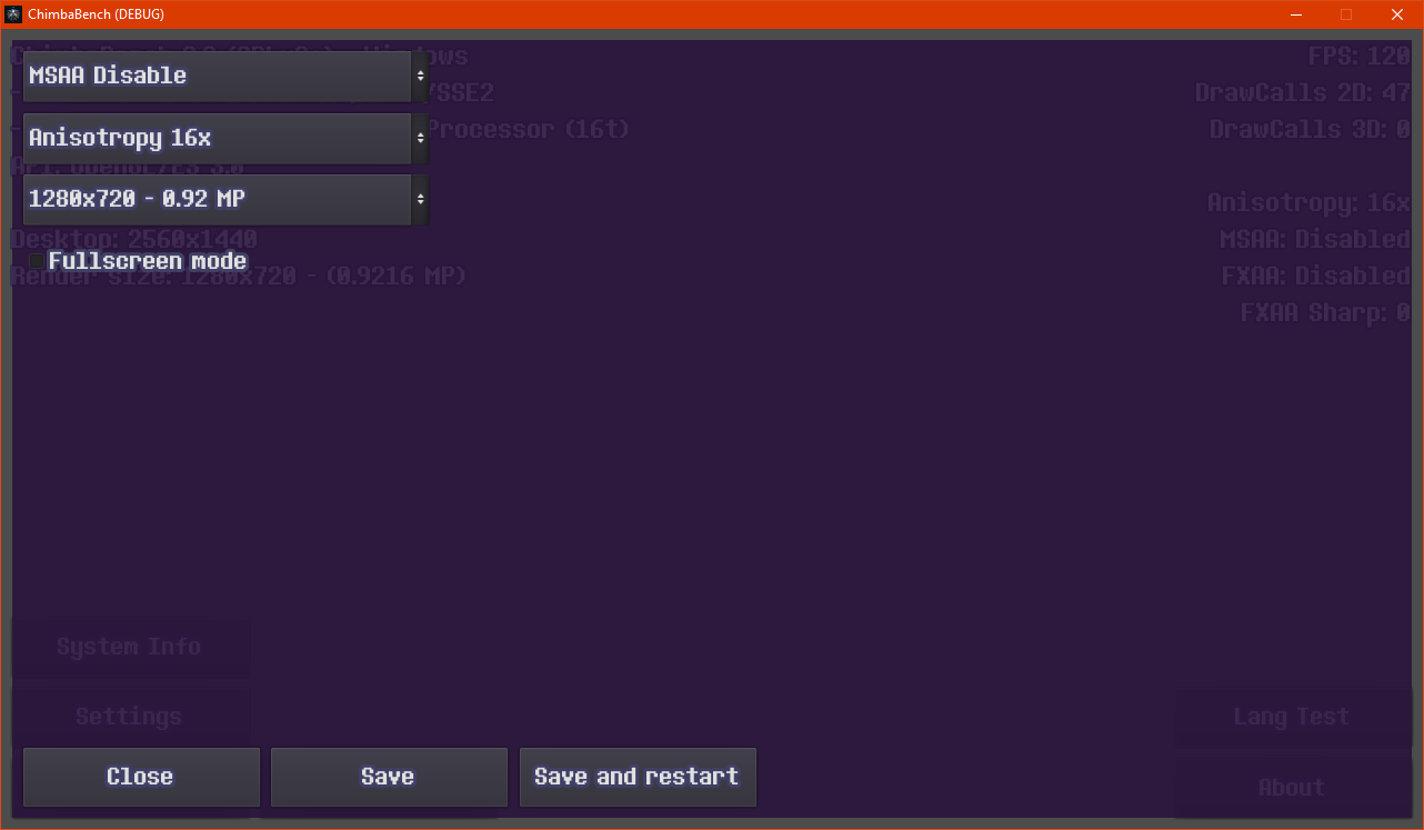 Не обошлось и без доработок слоя с информацией о тестовой сцене и системе пользователя, я убрал массив кода с фиксированными значениями при диапазоне разрешений и заменил на динамическое изменение размера в зависимости от текущего разрешения отрисовки.