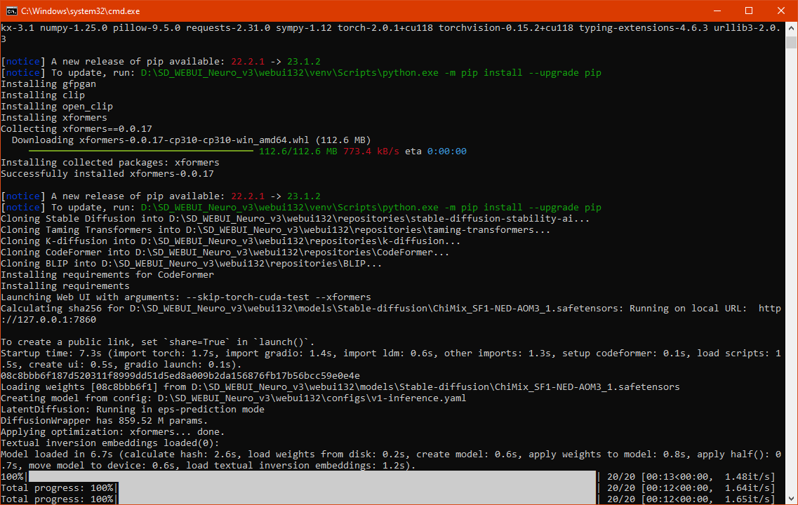 Прежде чем начать работу над новой сценой для разнообразия я взялся за сборку Stable Diffusion WebUI v3, меня просили прикрутить xformers, и было решено полностью обновить сборку собрав вместе с тем самым xformers. Разработчики Web UI явно поправили ряд противных проблем, и за это моё уважение им, хотя зависимости от этого никуда не исчезли, но мои сборки как раз и предназначены для того, чтобы изначально зависимый софт стал независимым и пригодным для нормального свободного использования.