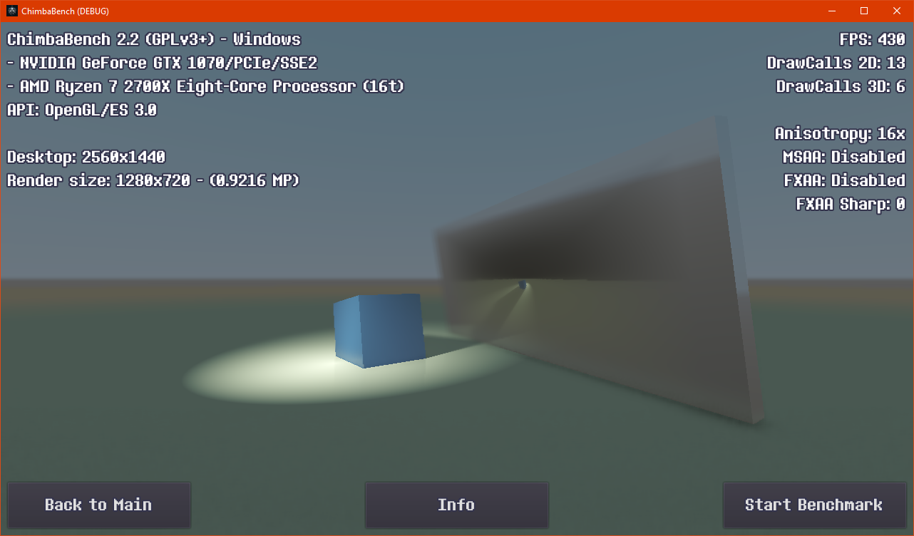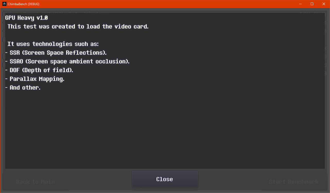 Вообще хорошо бы реализовать функционал подключения пользовательских сцен для тестирования, но думаю для версии 2.2 это уже будет перебор, так что оставлю для будущих версий ChimbaBench если не передумаю вообще добавлять такое...