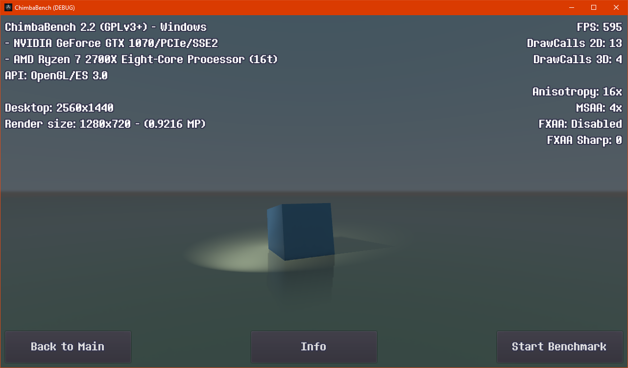 Точно, тест Simple Box надо бы сделать более простым для видеокарт, убрать parallax mapping, зеркальность и все лишнее, так гораздо лучше, кубик должен быть простым, и он теперь простой: