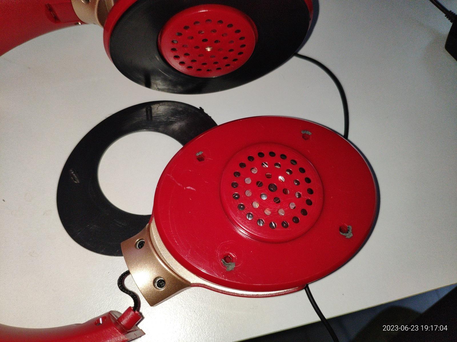 Да, отломался внутренний фиксатор так как пластик оказался недостаточно прочным и качественным, чтобы удержать столь мелкую деталь при нагрузках, а ещё я обнаружил что можно было просто подковырнуть отверткой амбушюры вместе с пластиковой рамкой, но тут сложно угадать, я ожидал что наушники собраны на саморезы, как обычно, но нет, на саморезы прикручены только накладки бронзового цвета: