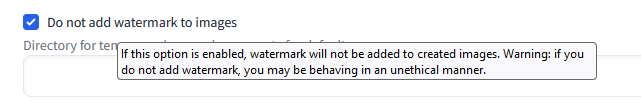 В старых версиях Stable Diffusion Web UI была настройка позволяющая отключить добавление невидимых водяных знаков в изображение, причем отключение водяных знаков называют неэтичным поведением, что довольно странно если учесть тот факт, что водяные знаки и так не работали: