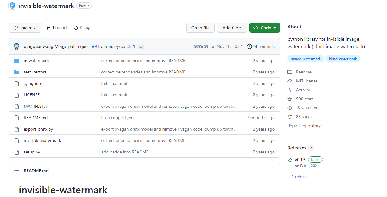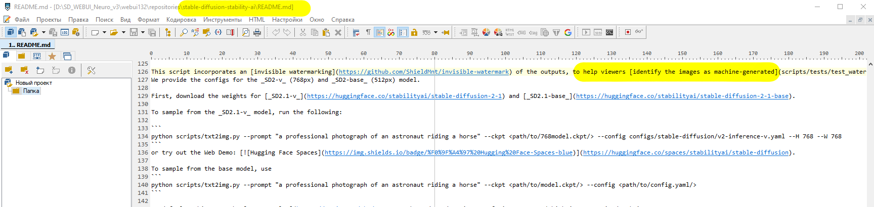 Почему я говорю "по идее"? Во-первых, если заглянуть в README файл "stable-diffusion-stability-ai", то можно найти оправдание существованию столь сомнительного функционала как "невидимый водяной знак", только всплывает первая же нестыковка, как невидимый водяной знак поможет пользователям определить что изображение было сгенерировано искусственно?