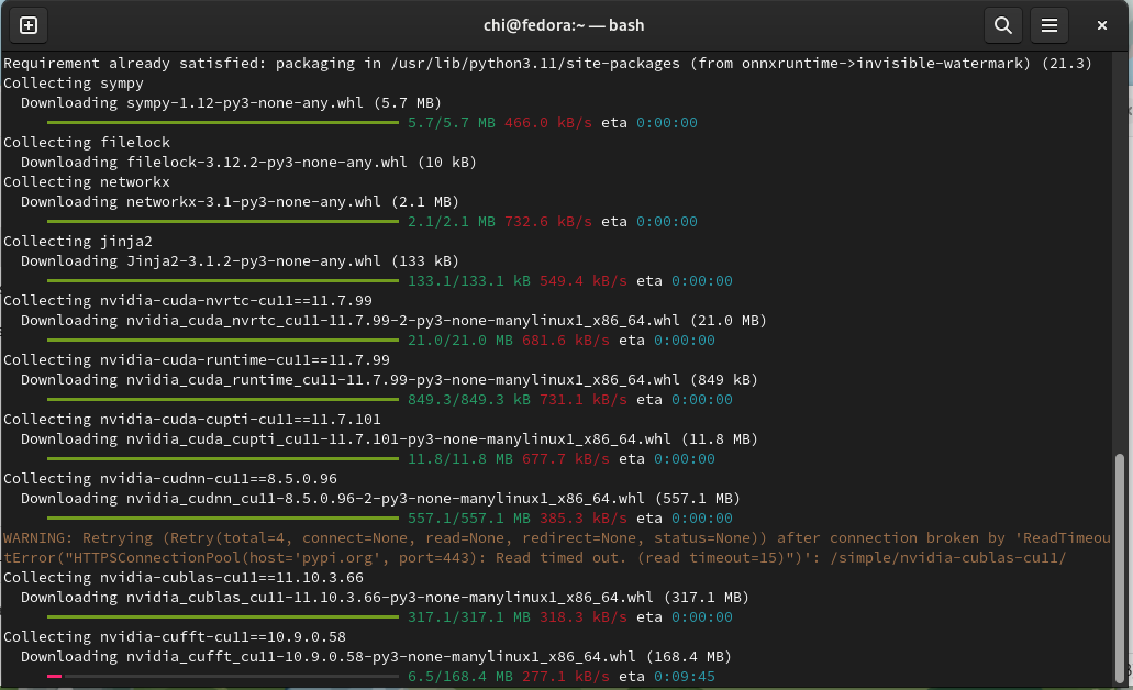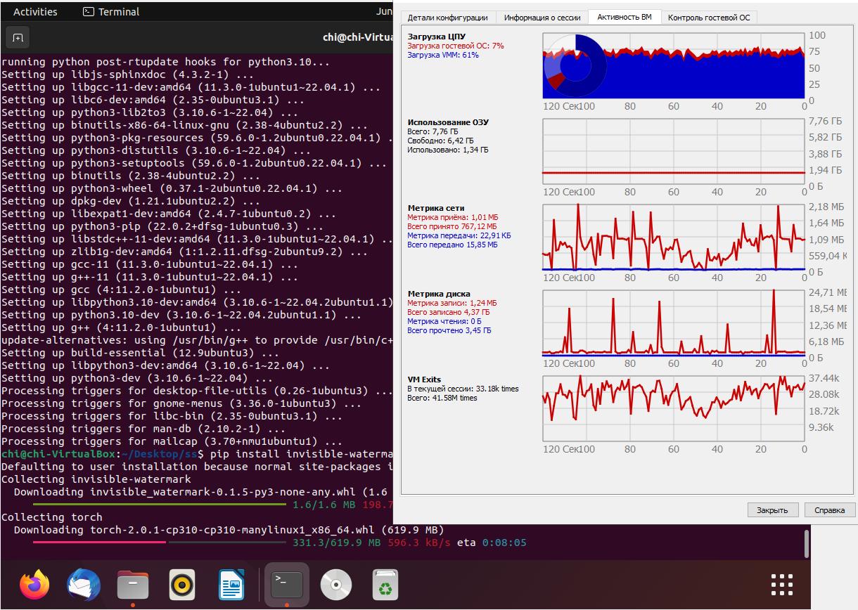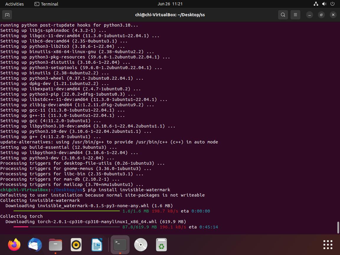 Уже 2.7 ГБ трафика влетело в виртуальную машину, а я всё ещё жду пока загрузятся зависимости линуксоидного "invisible-watermark", надеюсь ничего не оборвётся и мне не нужно будет заново всё качать. Интересно, почему обычные пользователи не любят линуксы и часто воротят нос от одного упоминания дистрибутивов, даже не представляю, наверное они просто "вендусятники" глупые...