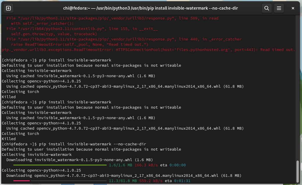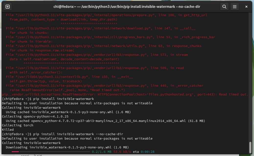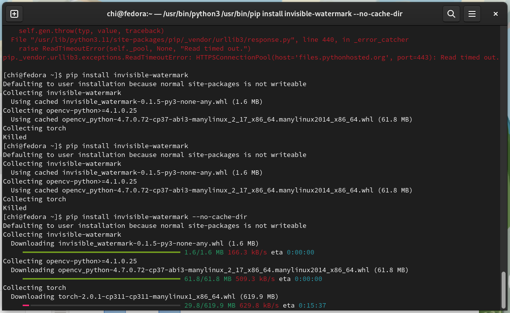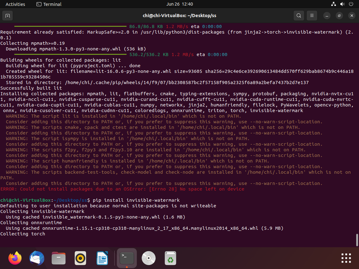 Ладно, 3.1 ГБ места свободно, этого ведь хватит, чтобы установить многострадальный "invisible-watermark"?