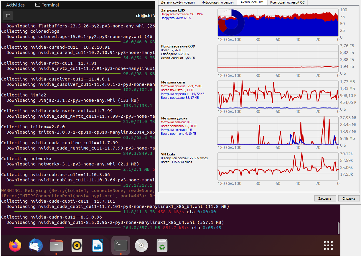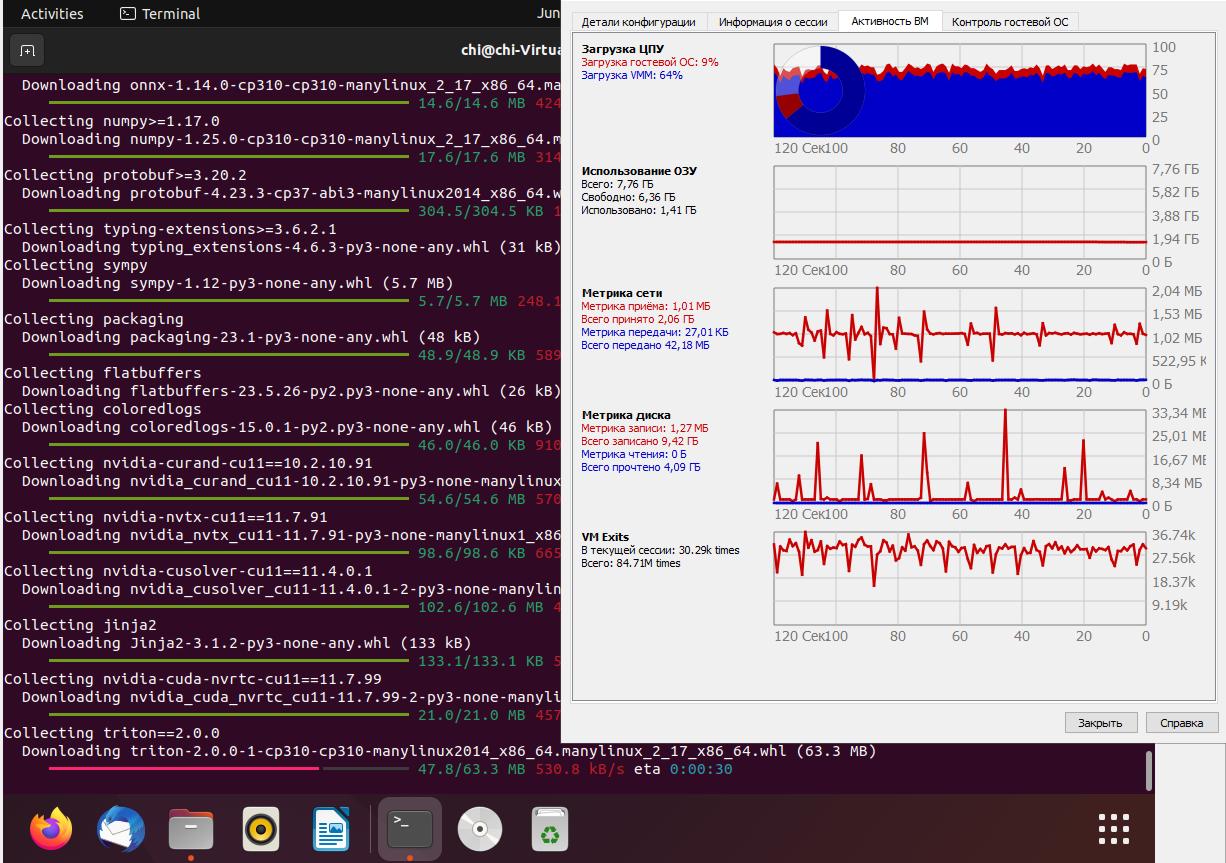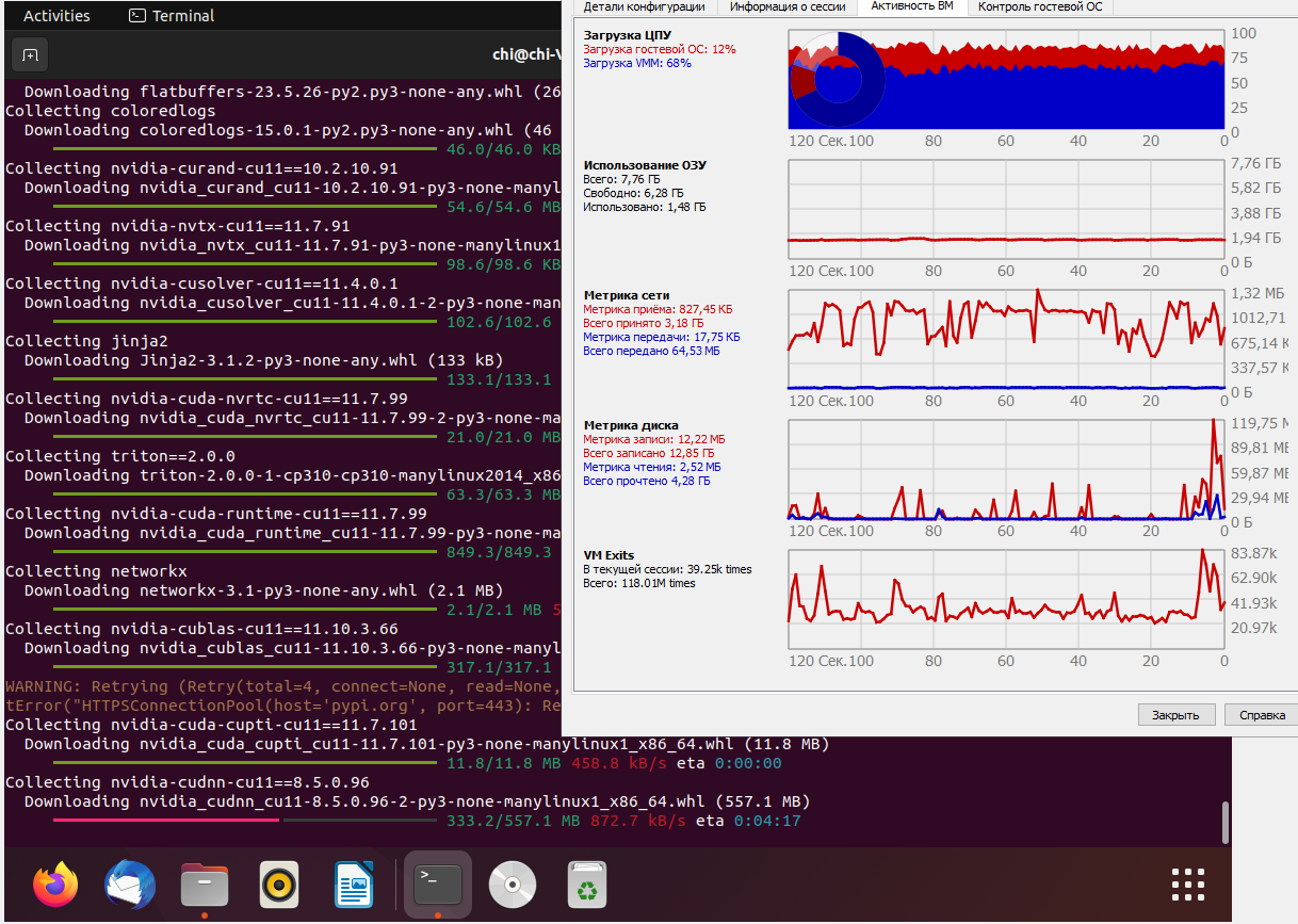 То есть да, Ubuntu нагло своровала фоном 228 МБ трафика, что больше половины от всего трафика вошедшего в систему, а ведь если бы дистрибутив Linux не воровал то зависимость torch-2.0.1 уже давно загрузилась бы у меня... То есть по вине дистрибутива я потерял время просто потому что дистрибутив что-то там качает в фоне без моего разрешения!