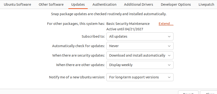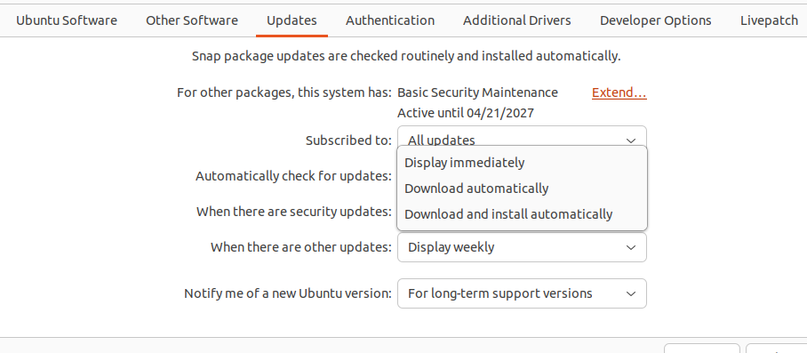 О да, чтобы отключить автоматическую проверку обновлений нужны были root права. Ох, эта мнимая линуксоидная безопасность. Но что меня действительно бесит, так это тот факт, что мне запрещают полностью отключить обновления, в настройках просто нет варианта "отключить и никогда не спрашивать"! Они будут долбить и долбить уведомлениями пока у пользователя не сдадут нервы! Прямо как поступает Mozilla Firefox, так же запрещающая пользователю отключать обновления просто не давая необходимых настроек для полного отключения: