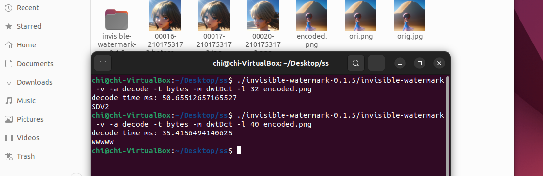 В общем решил я запустить "invisible-watermark" и проверить сгенерированное изображение на наличие водяных знаков, ведь это довольно логичный шаг со стороны обычного пользователя, взять программу для работы с водяными знаками и проверить картинку на наличие тех самых невидимых водяных знаков.